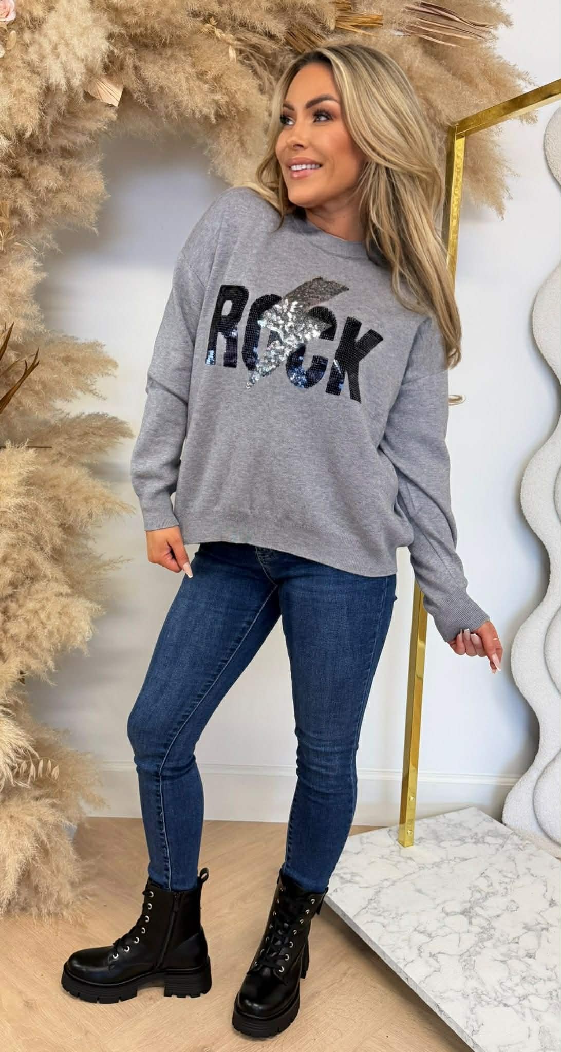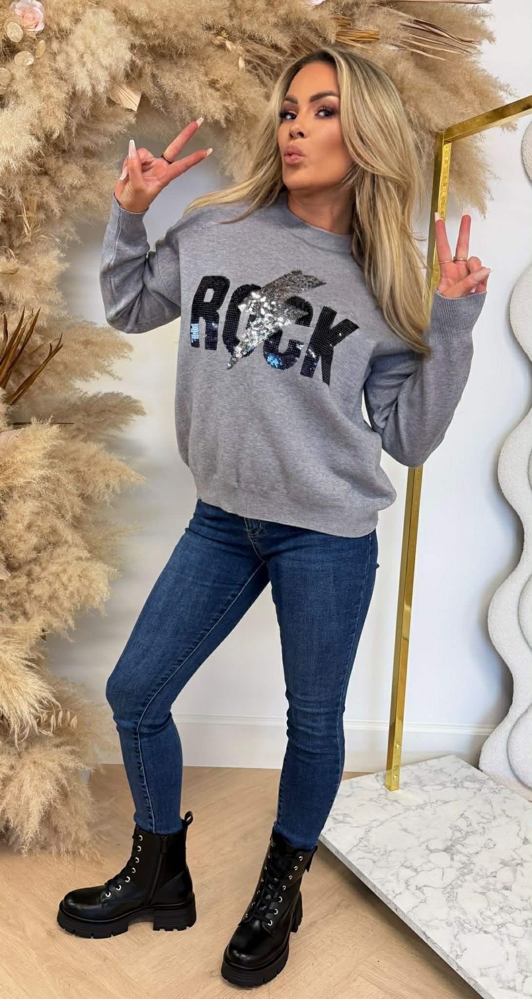 ACTIE ROCK SEQUIN SWEAT 10308 GREY