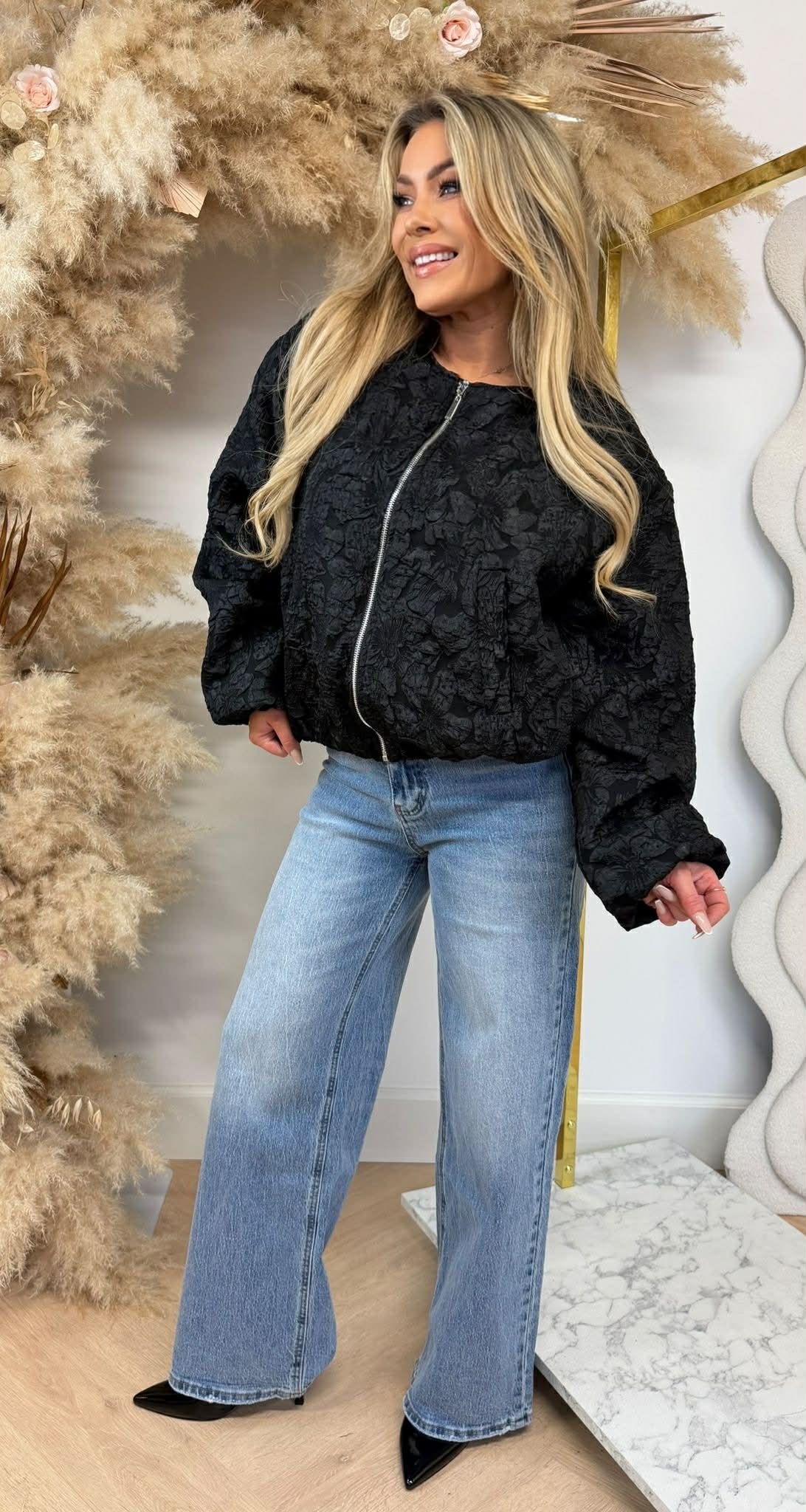ALL OVER FLOWER BOMBERJACKET BLACK