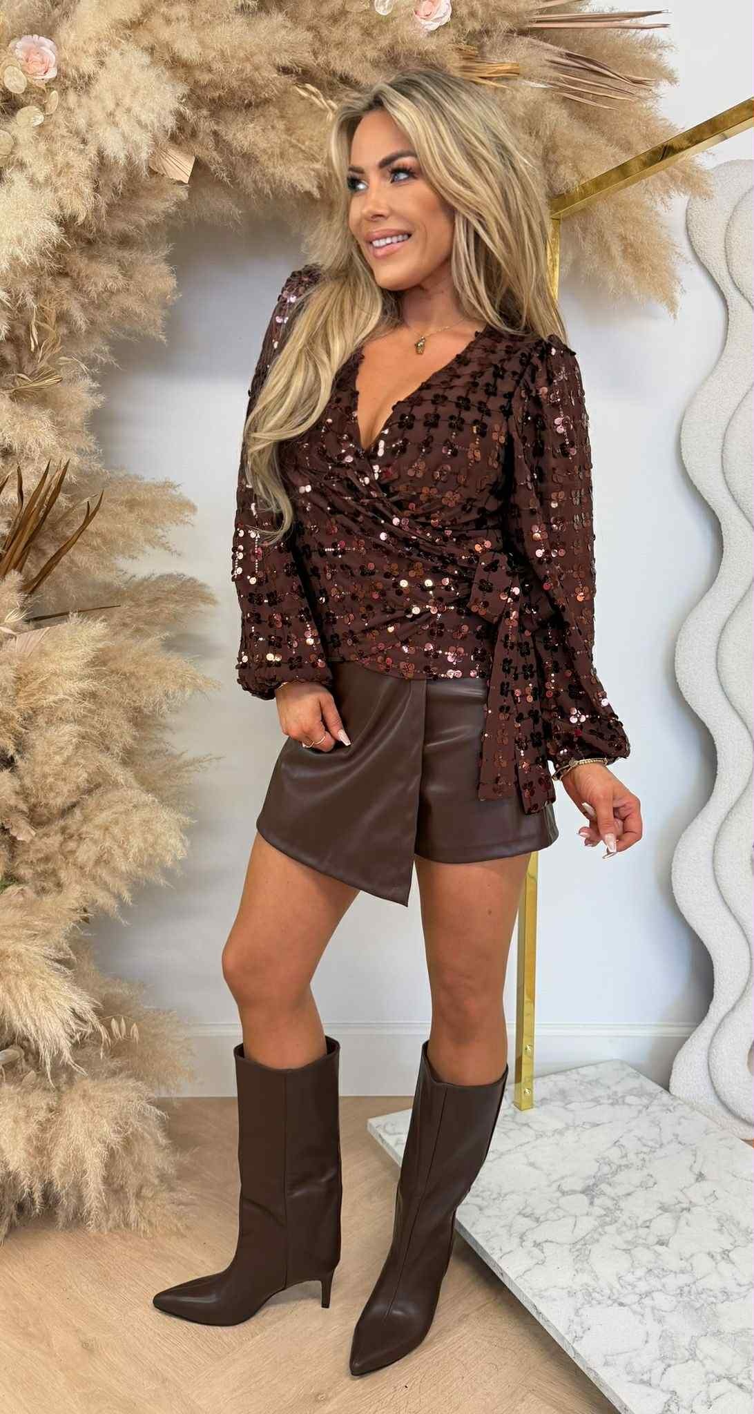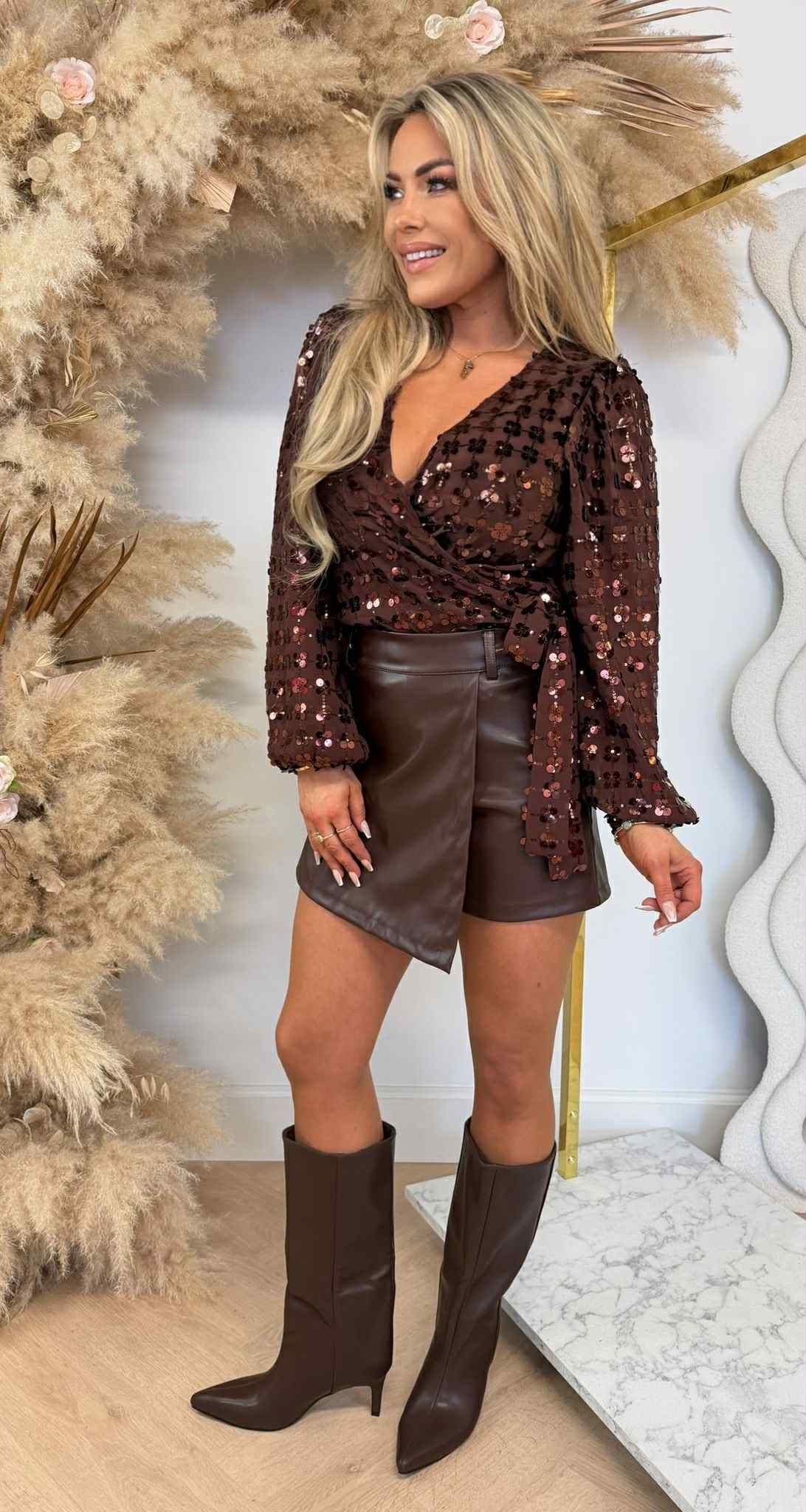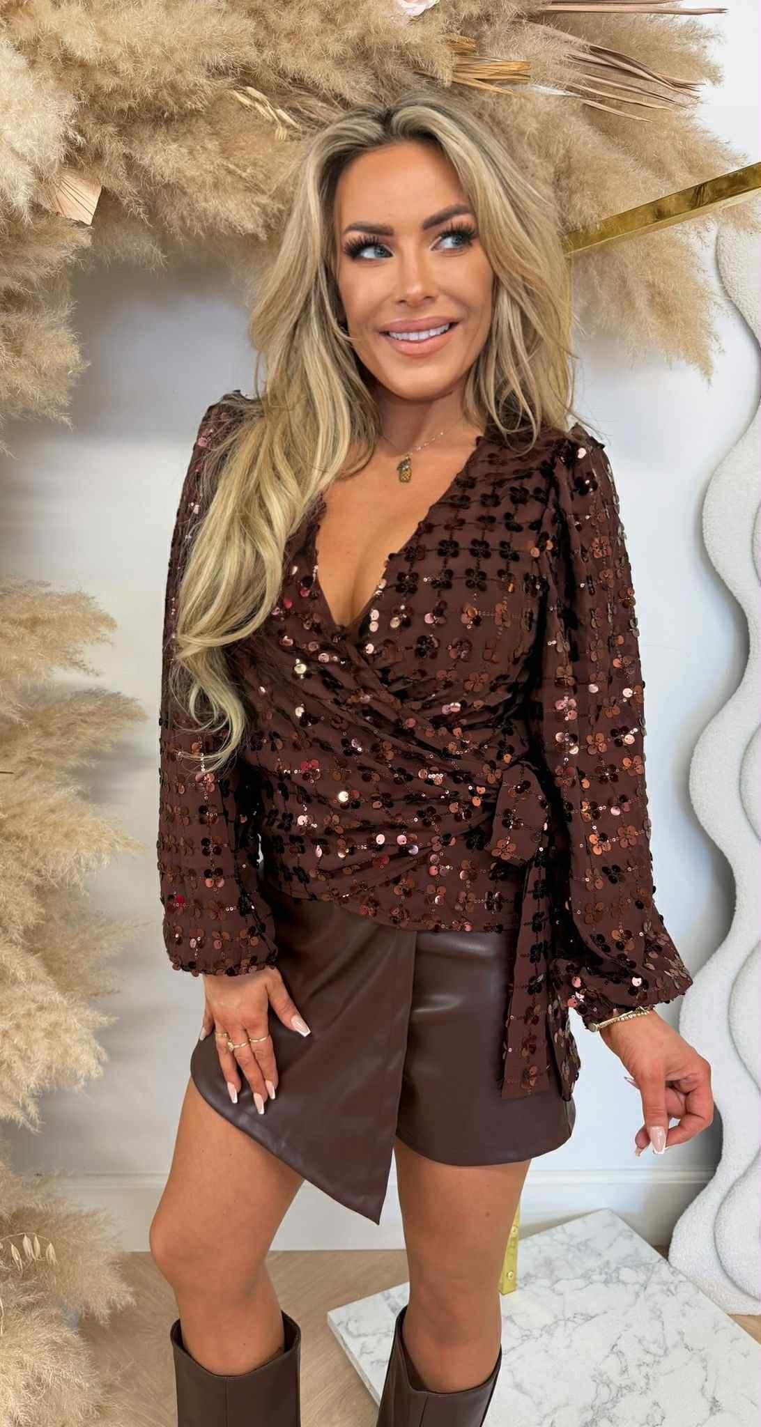 ALL OVER PAILLETTEN OMSLAG TOP 8866-3 CHOCO
