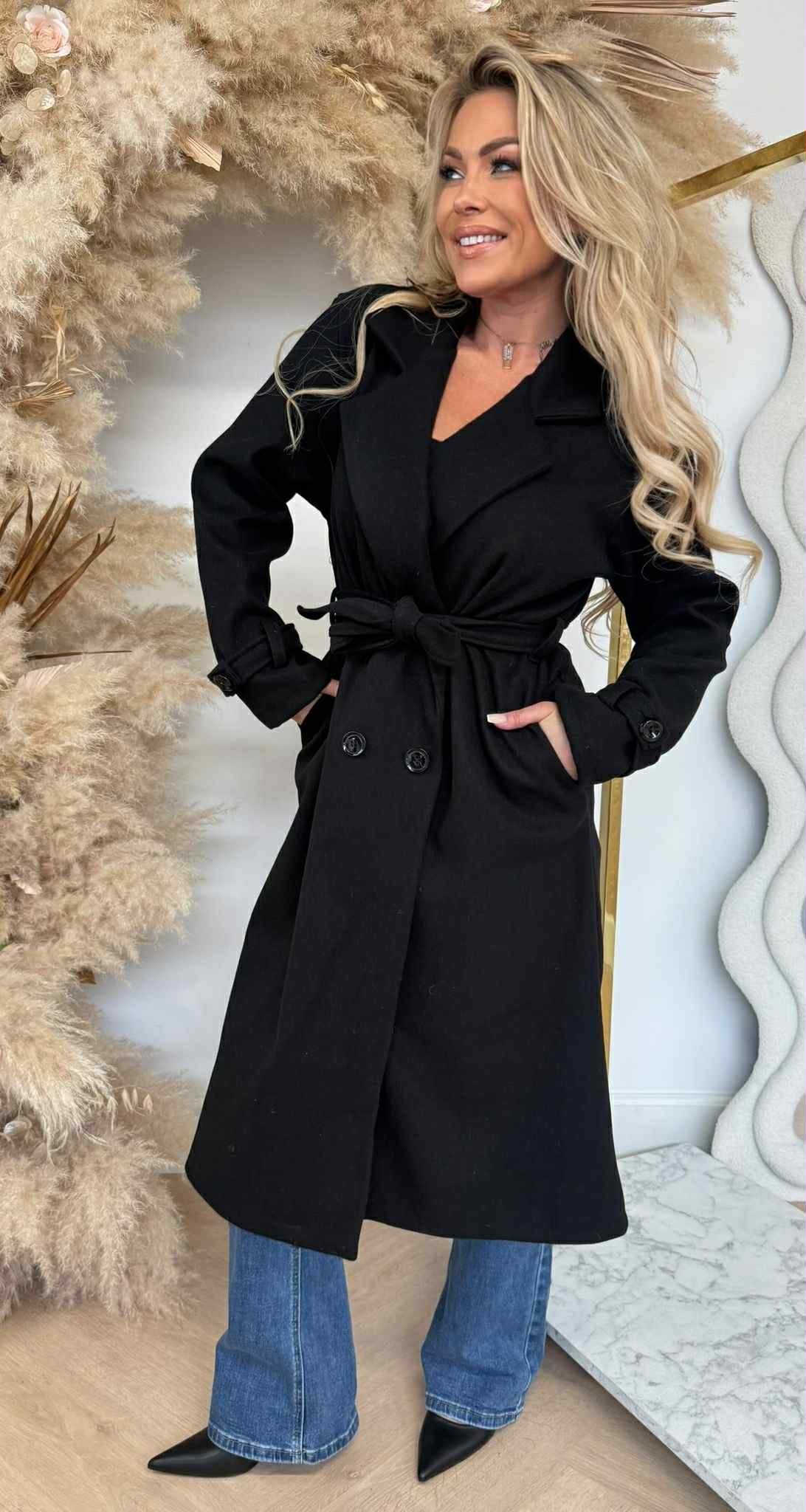 ANNA BASIC BUTTON COAT BLACK