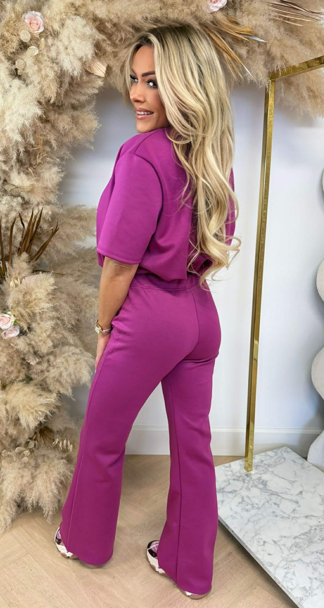 OEH-LA-LA! We hebben weer een geweldige tweedelige set binnen. Deze set bestaat uit een cropped vestje en een straight leg pants <3