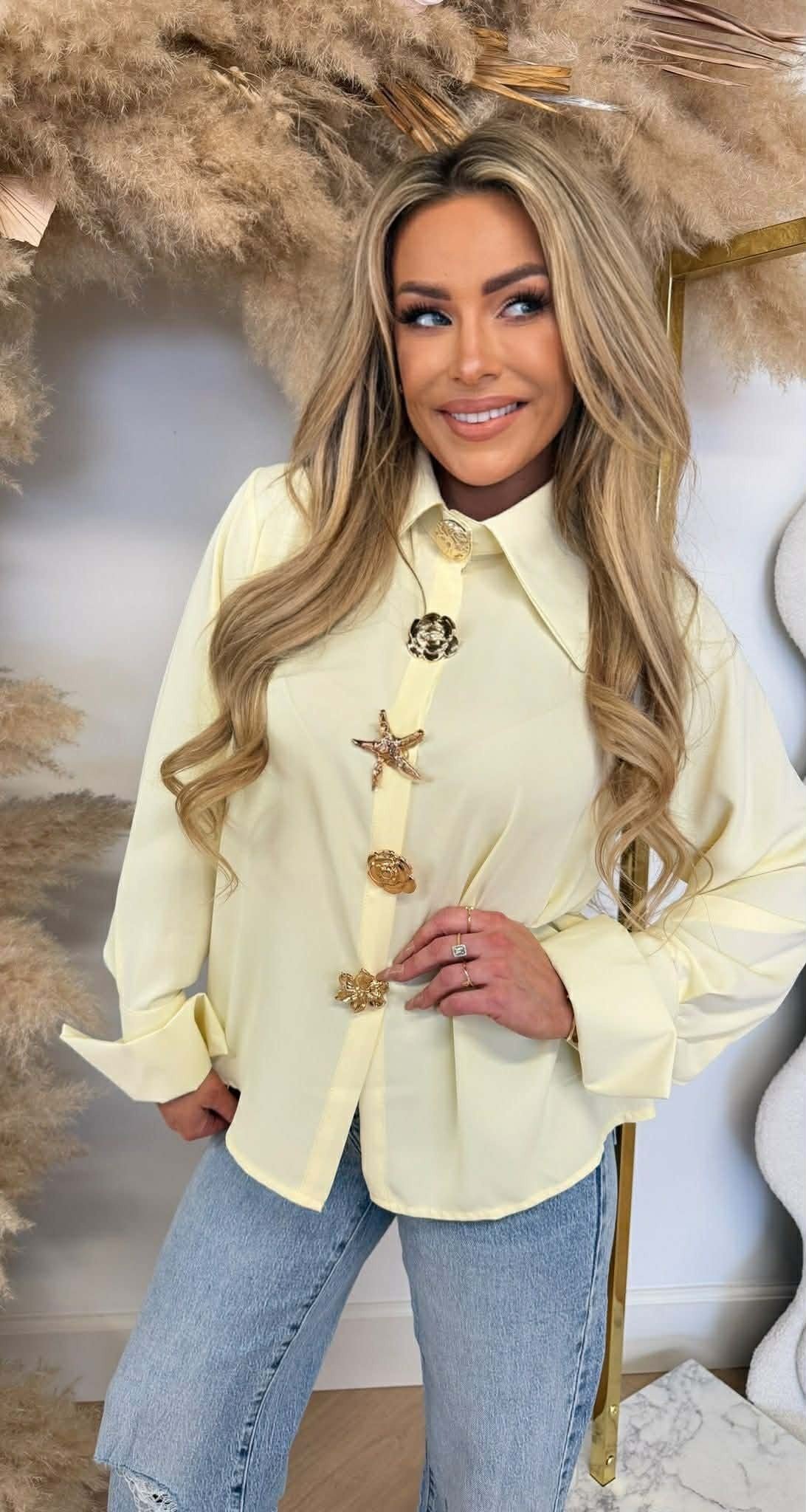 BIG BUTTON TREND BLOUSE! Een gave blouse, met allemaal verschillende knopen <3 In meerdere kleuren te shoppen