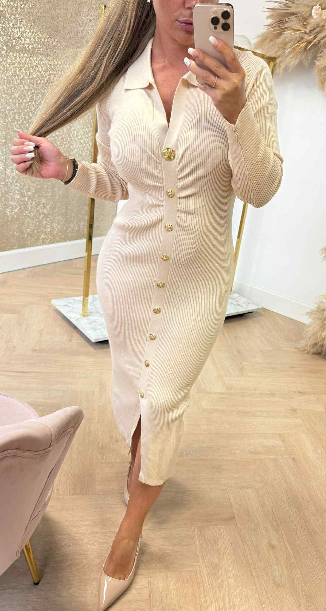HOW CUTE! Deze jurk met button is toch geweldig?! Verkrijgbaar in meerdere kleuren.