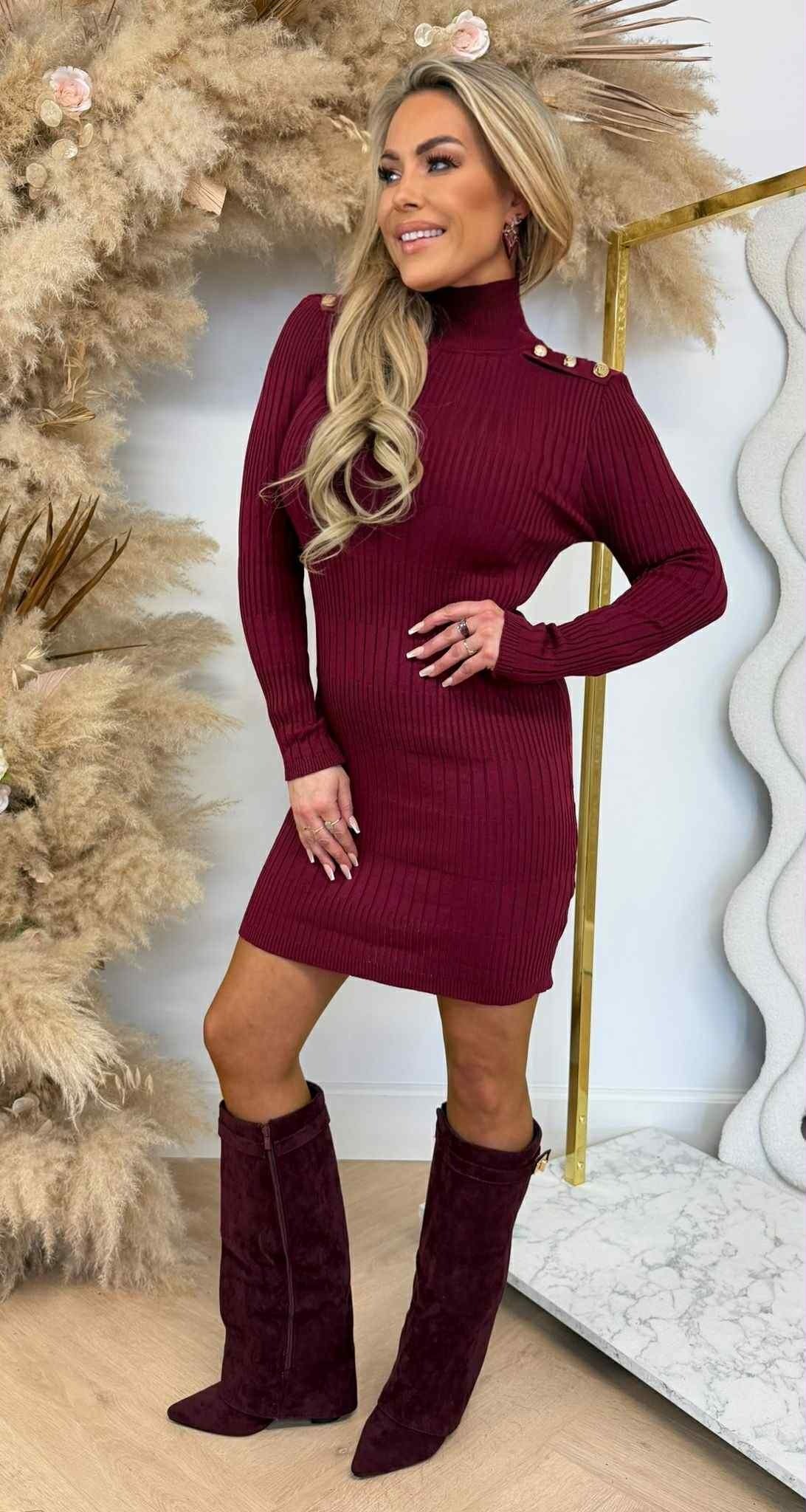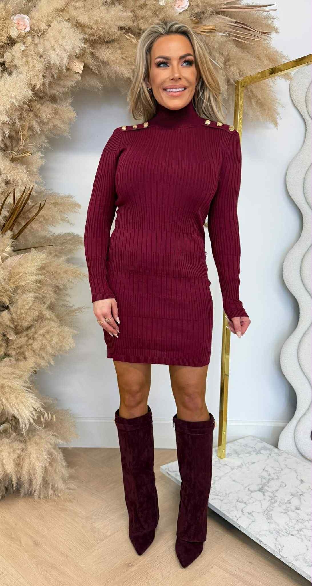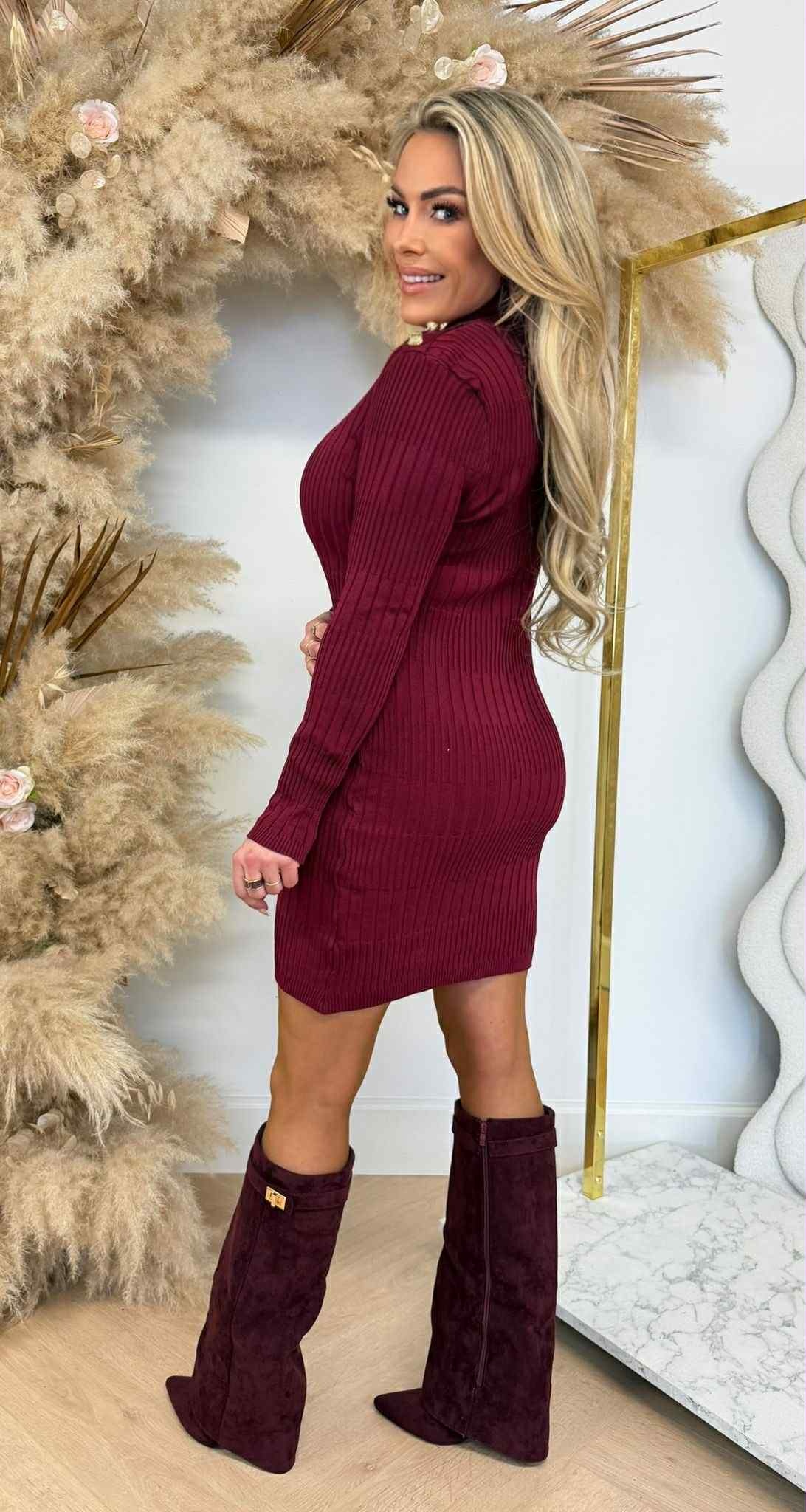 BUTTON RUFFLE DRESS 10203 BORDEAUX