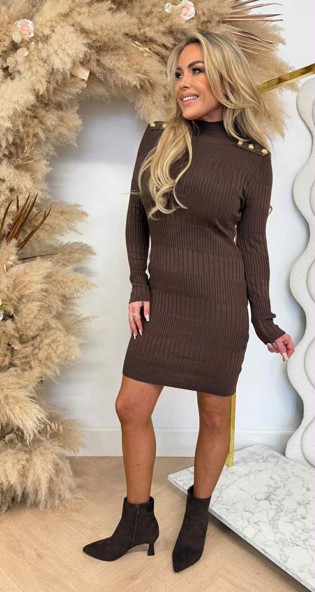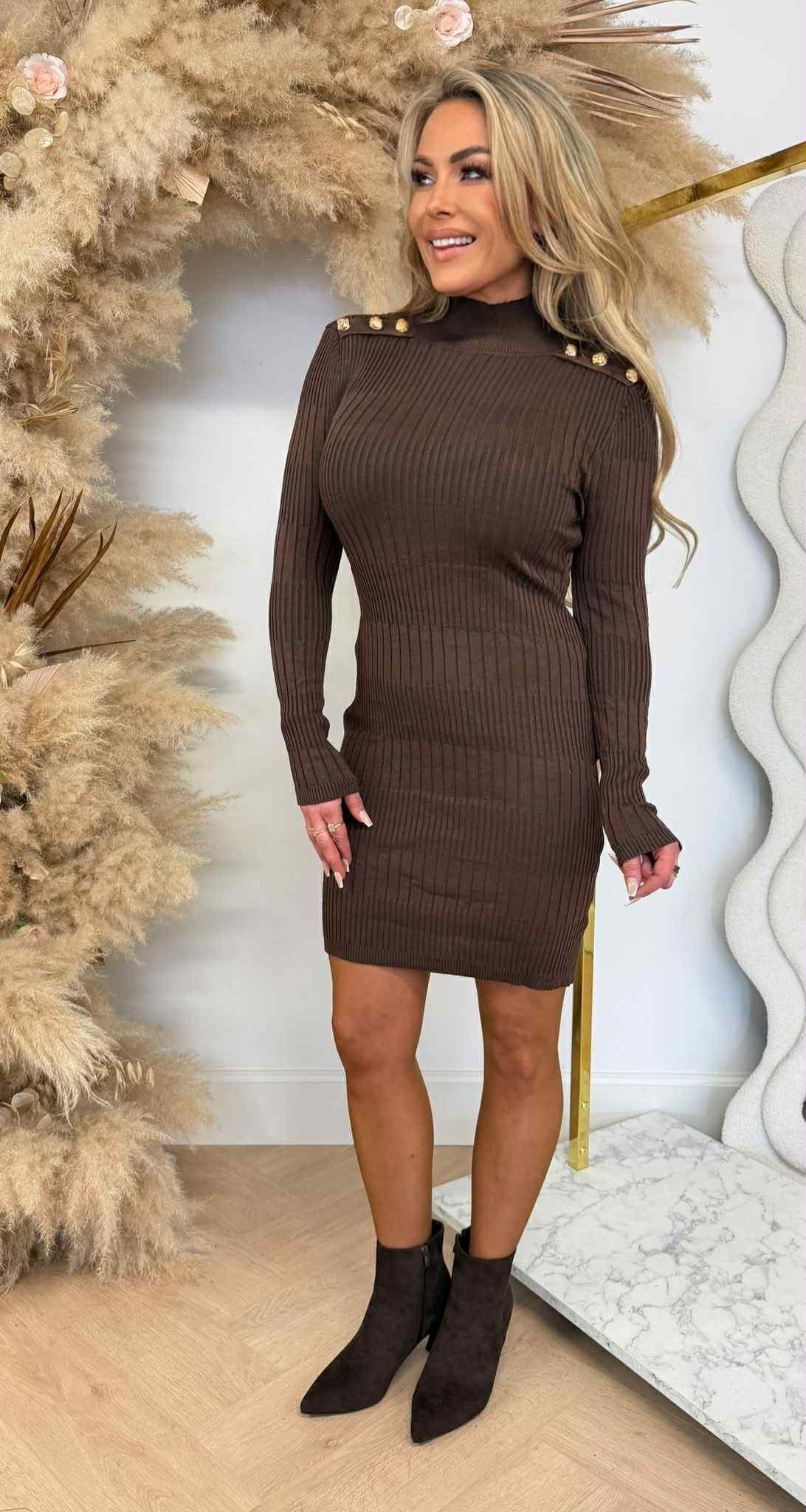 BUTTON RUFFLE DRESS 10203 DARKCHOCO