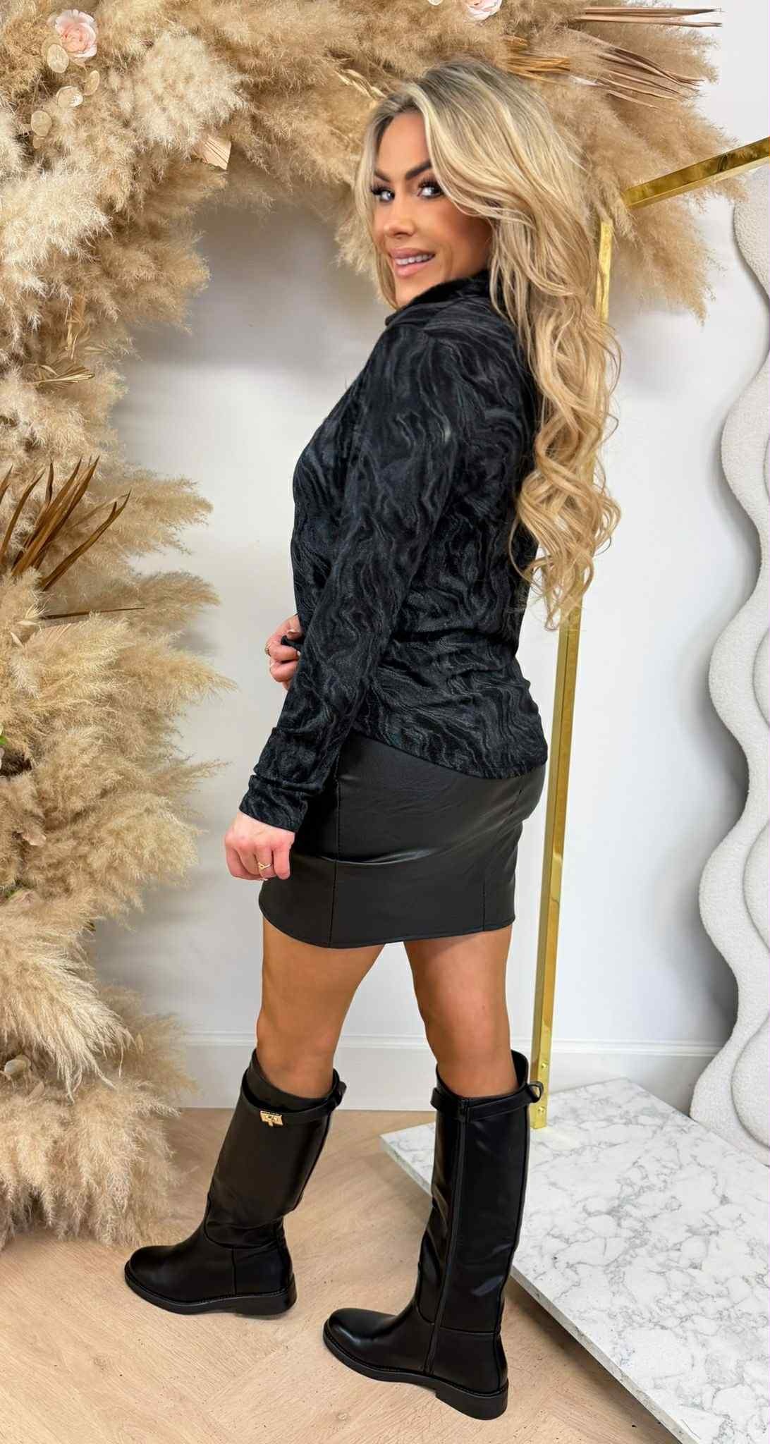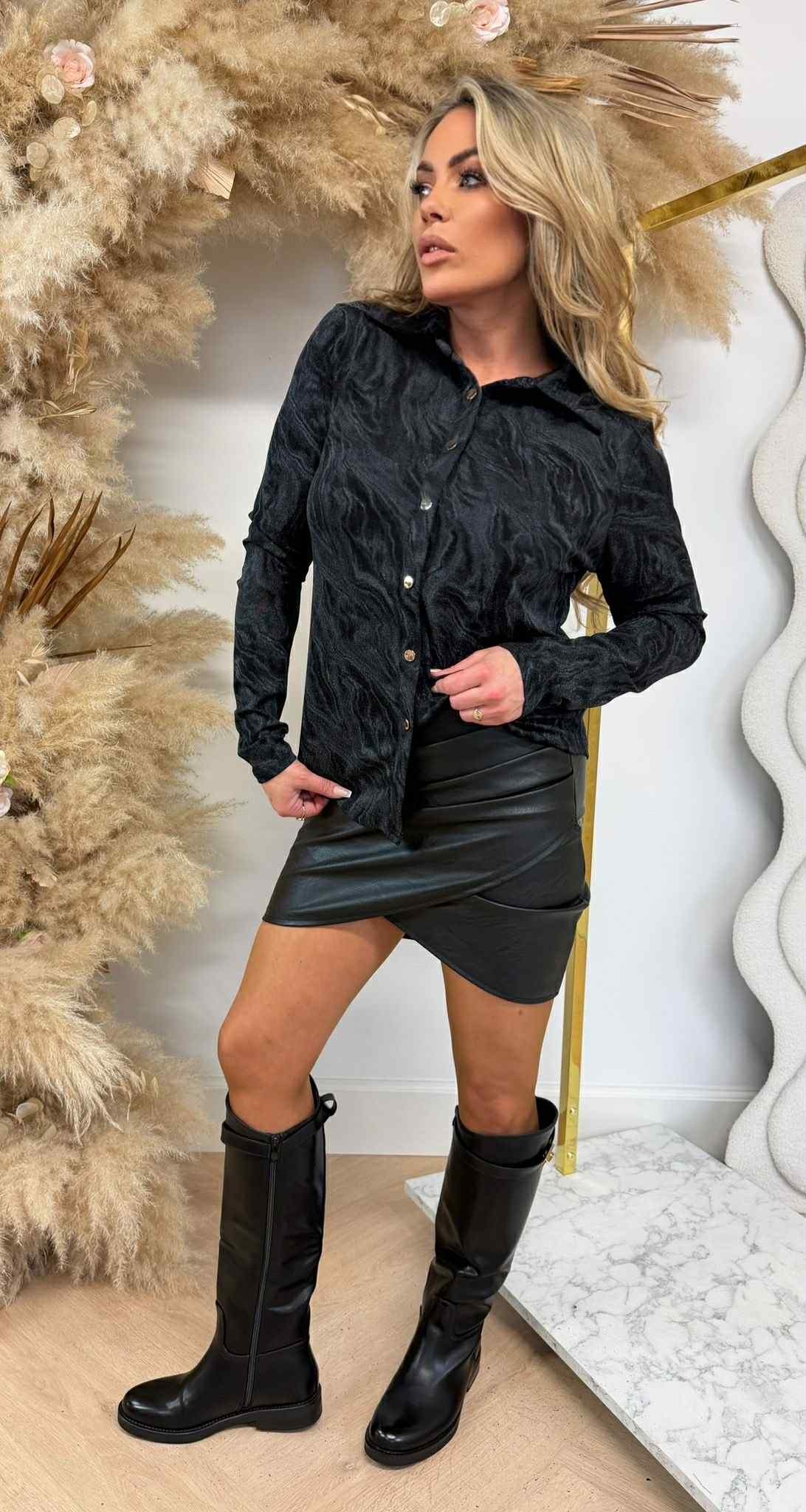 Deze blouse heeft een super chique look door de mooie shine afwerking.