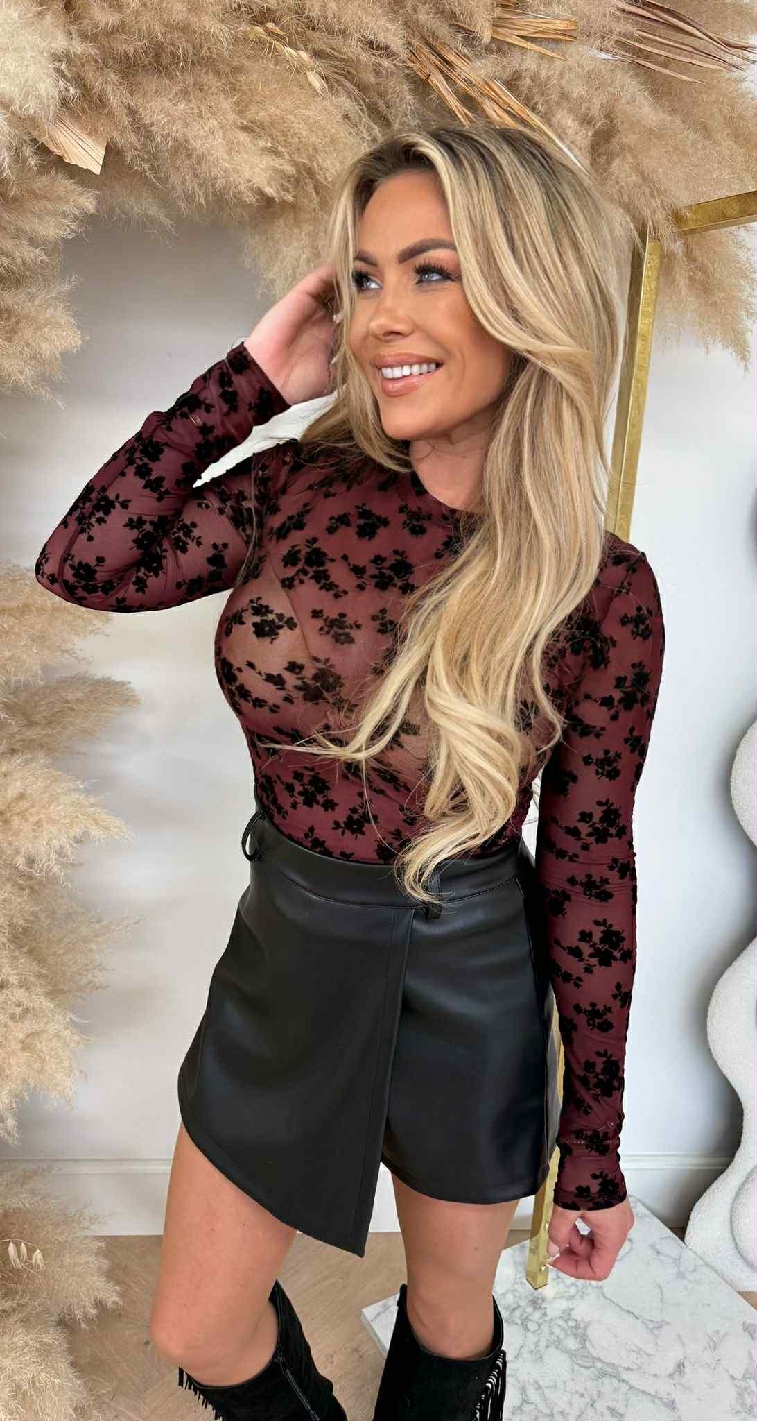 BY SWAN FLOWER PRINT GAUZE BODY 9736 BORDEAUX