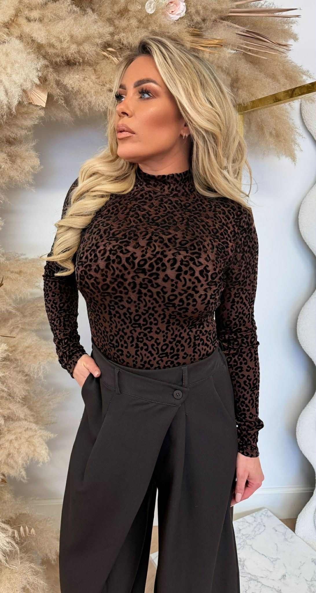 BY SWAN LEOPARD VELVET TOP 10007 COFFEE