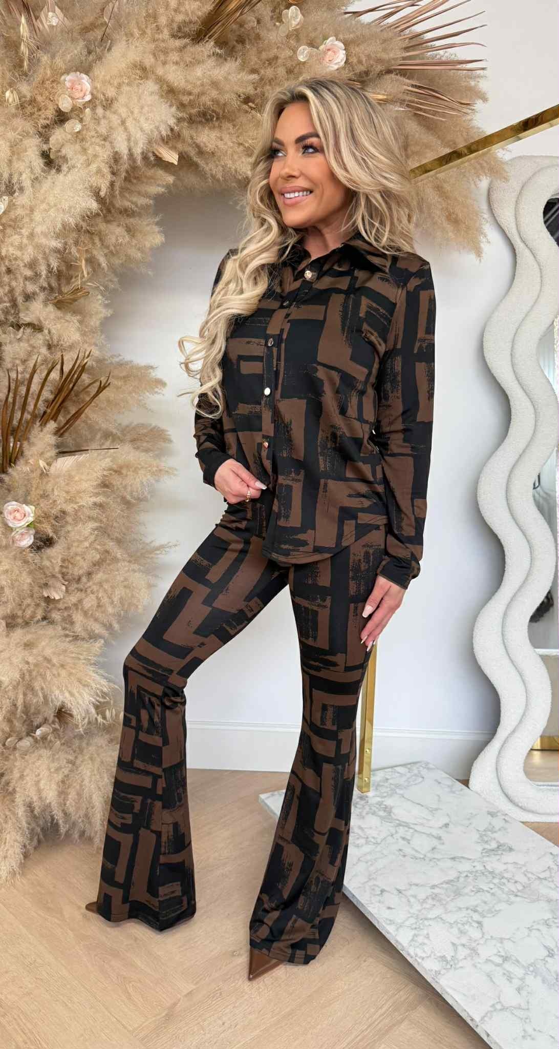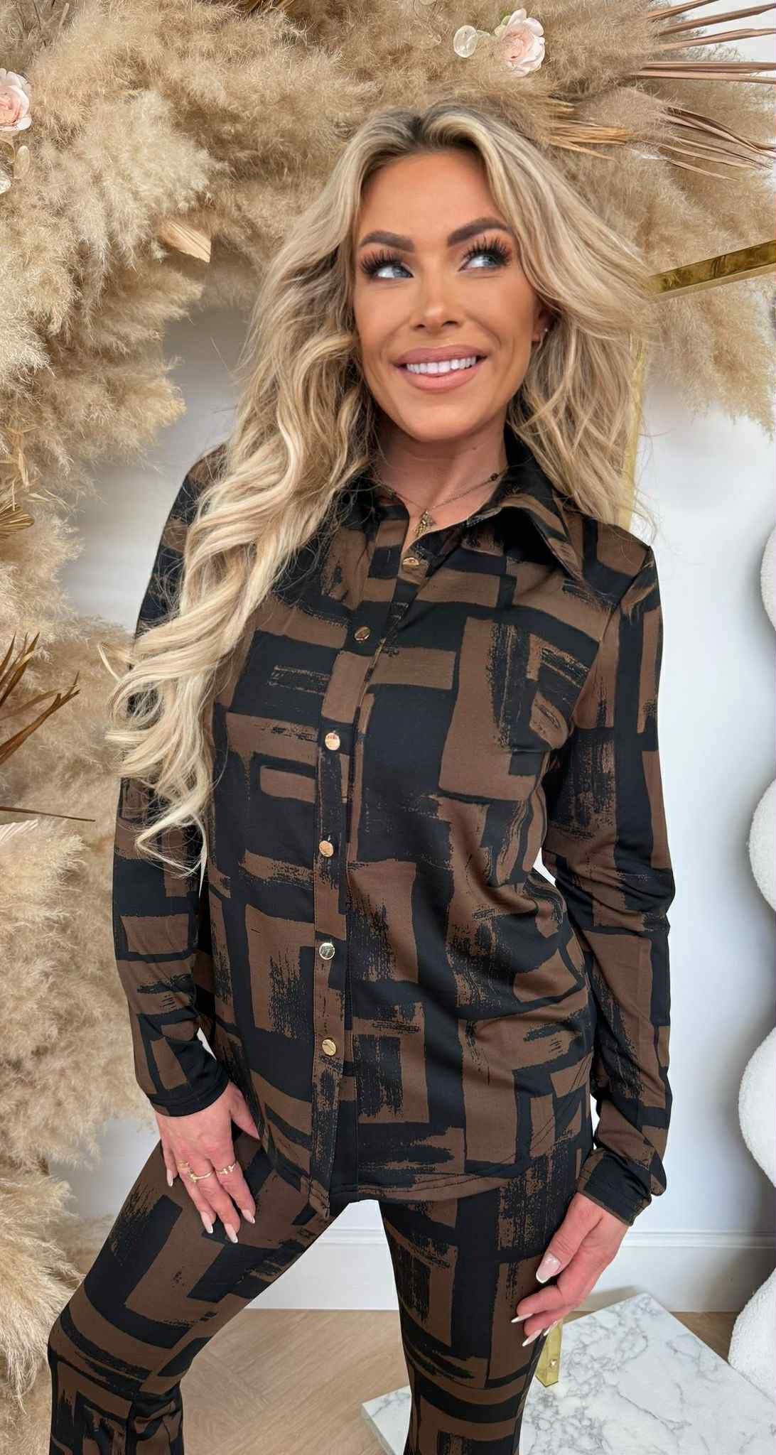 BY SWAN TRAVEL PRINT BLOUSE 9189 COFFEE