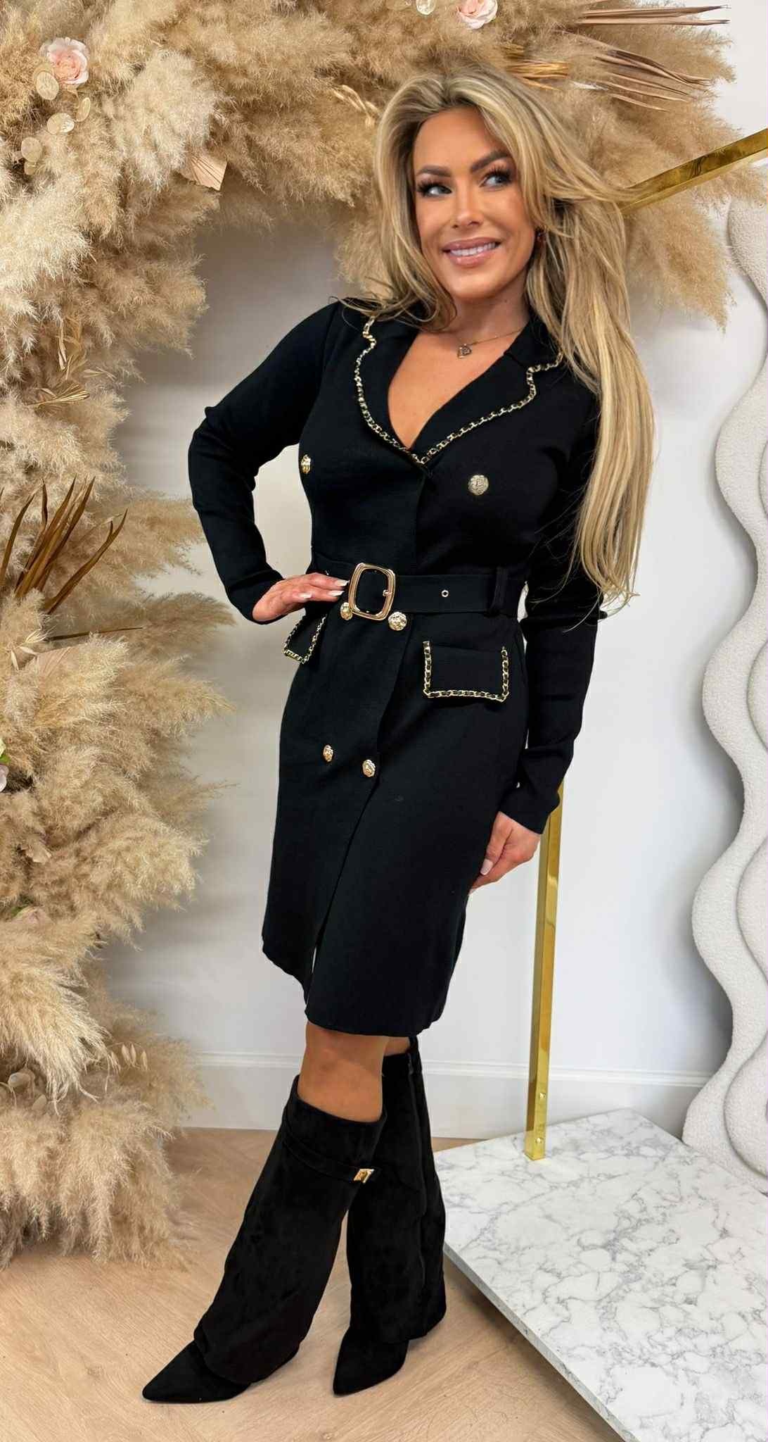 CHAIN ROSE BUTTON DRESS 663 BLACK