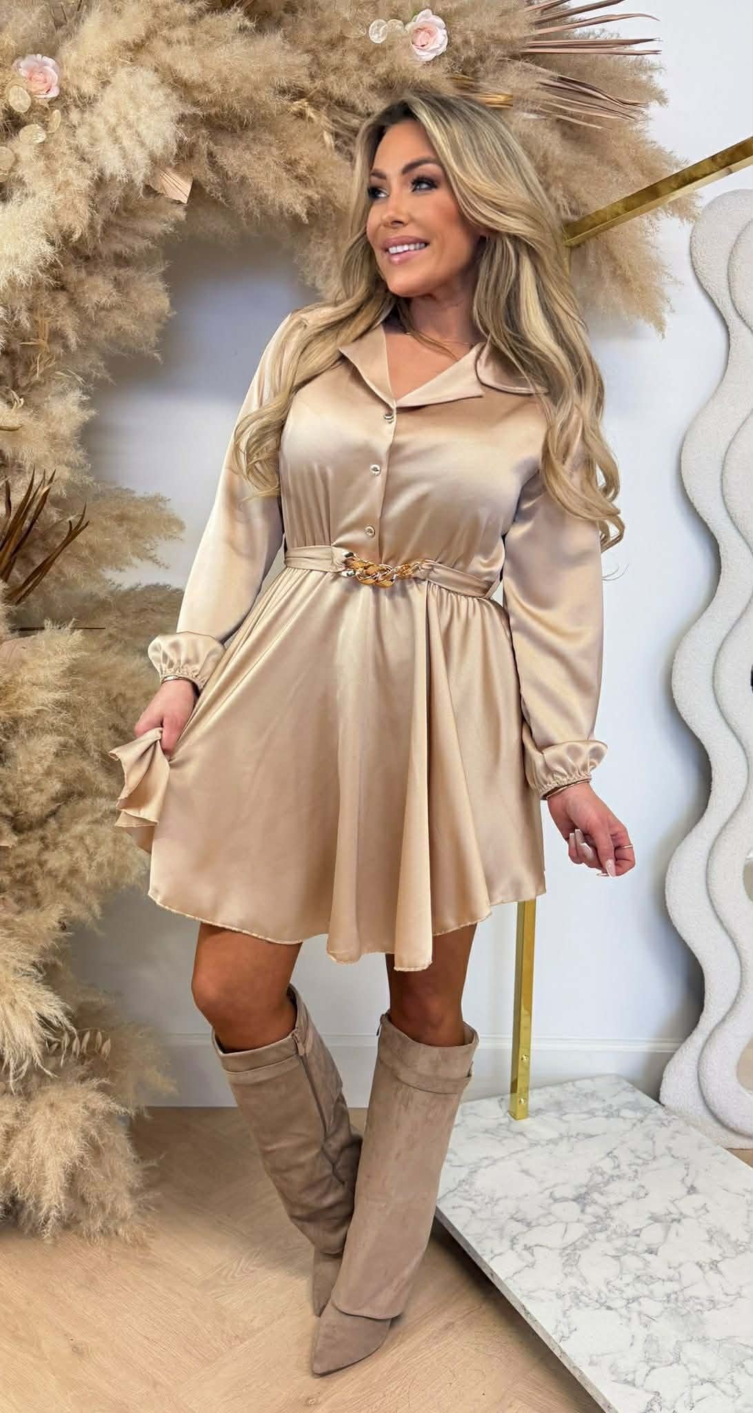 CHAIN SATIN TUNIEK CHAMPAGNE