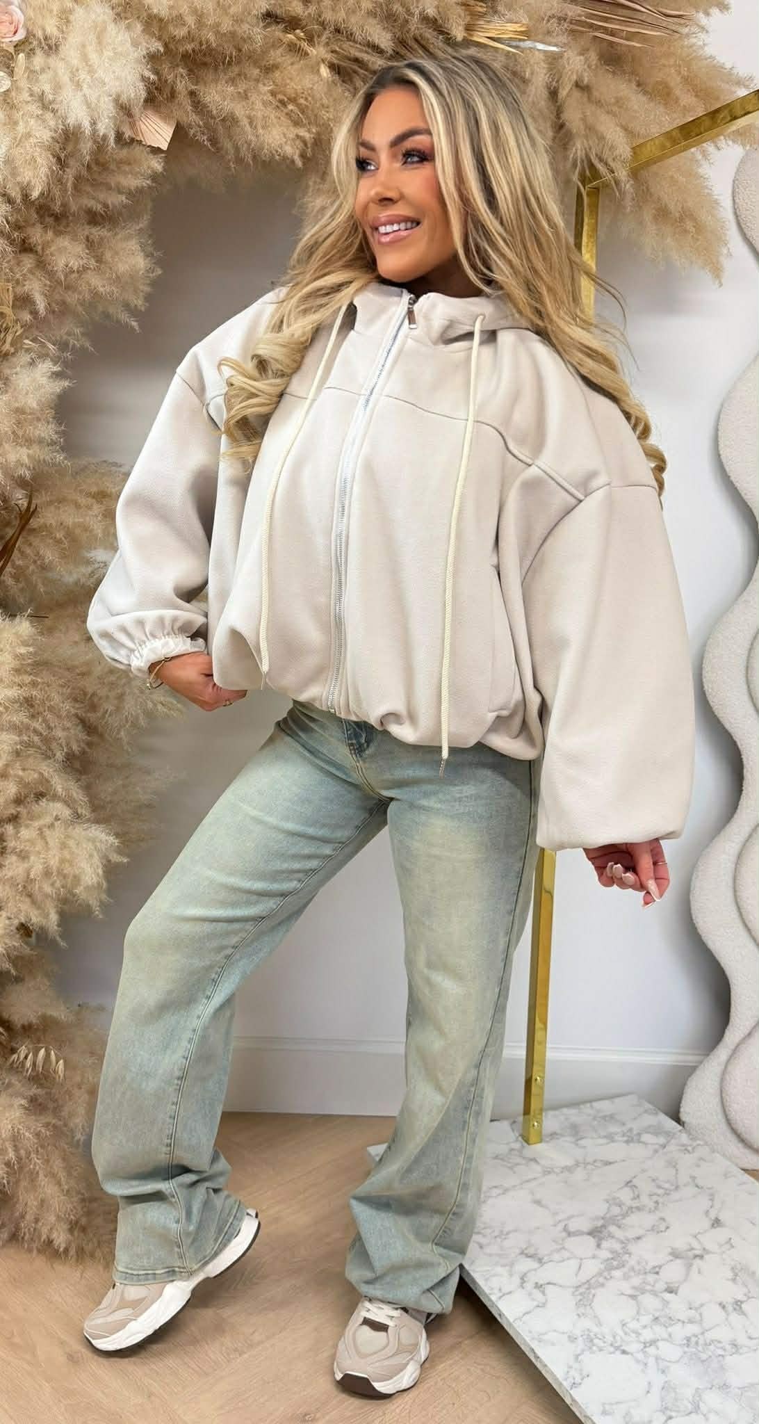CROPPED ZIP VEST BEIGE