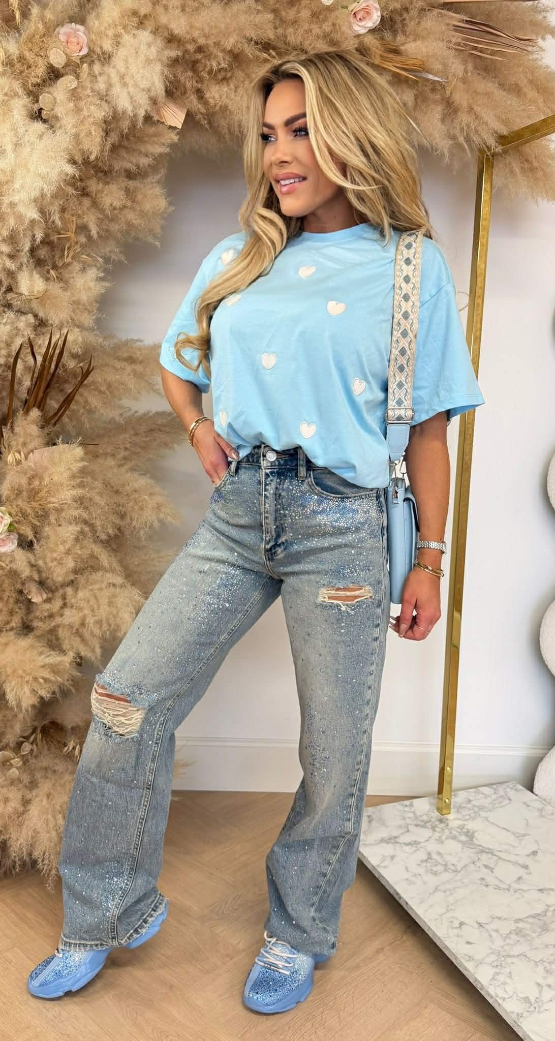 SO CUTE! Deze tee met all over hartjes is cute, comfy en helemaal on trend! De hartjes maakt 'm extra girly! In meerdere kleuren verkrijgbaar.