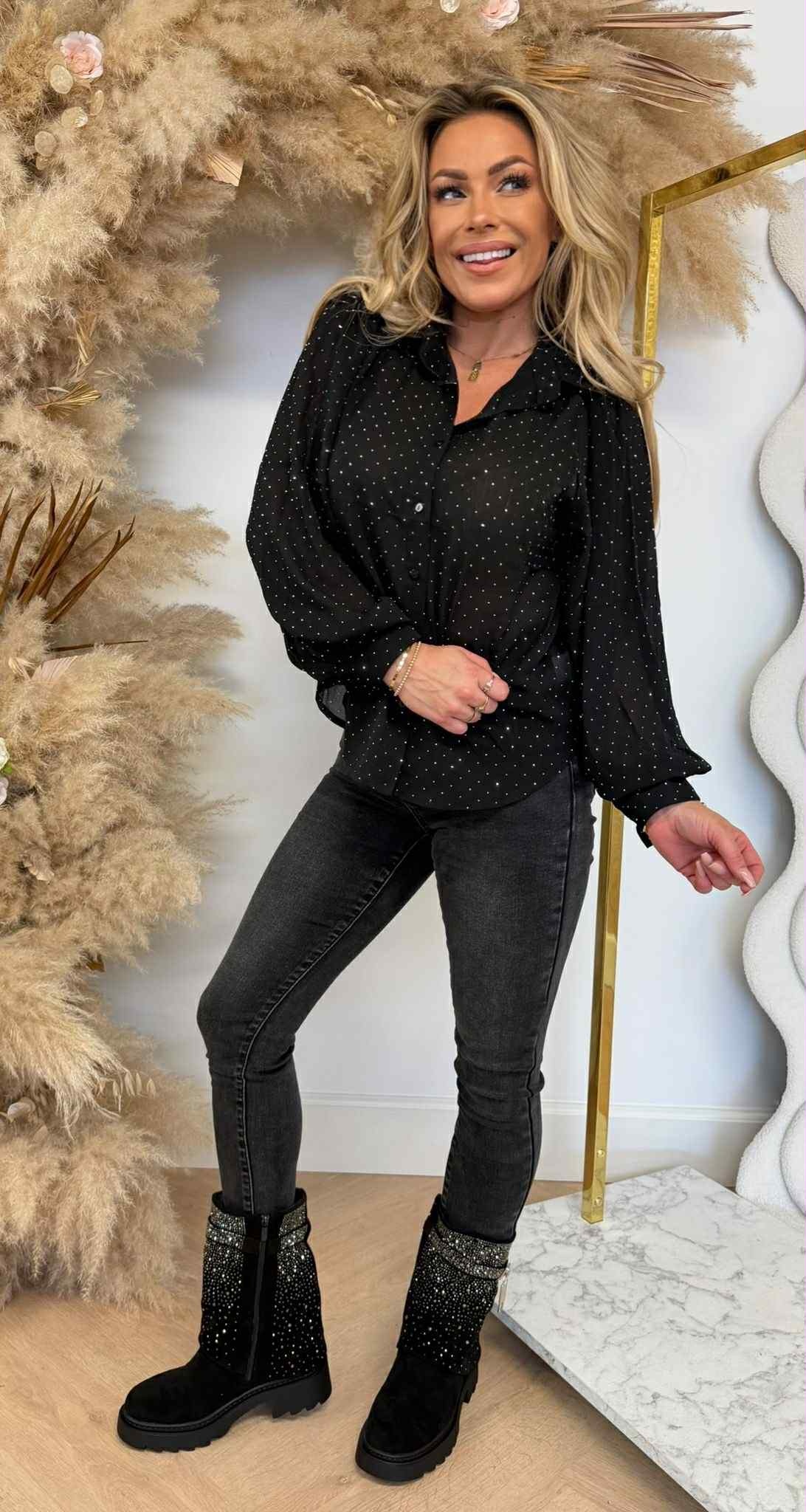 Deze blouse heeft verfijnde glitters. Perfect voor een avondje uit of diner. Heb jij 'm al weten te bemachtigen?