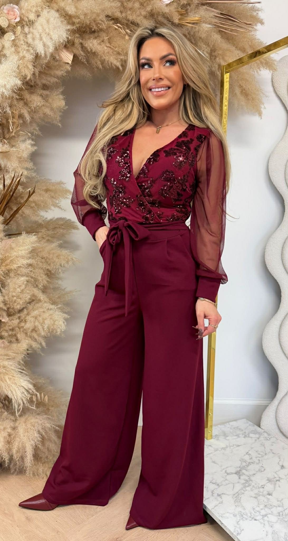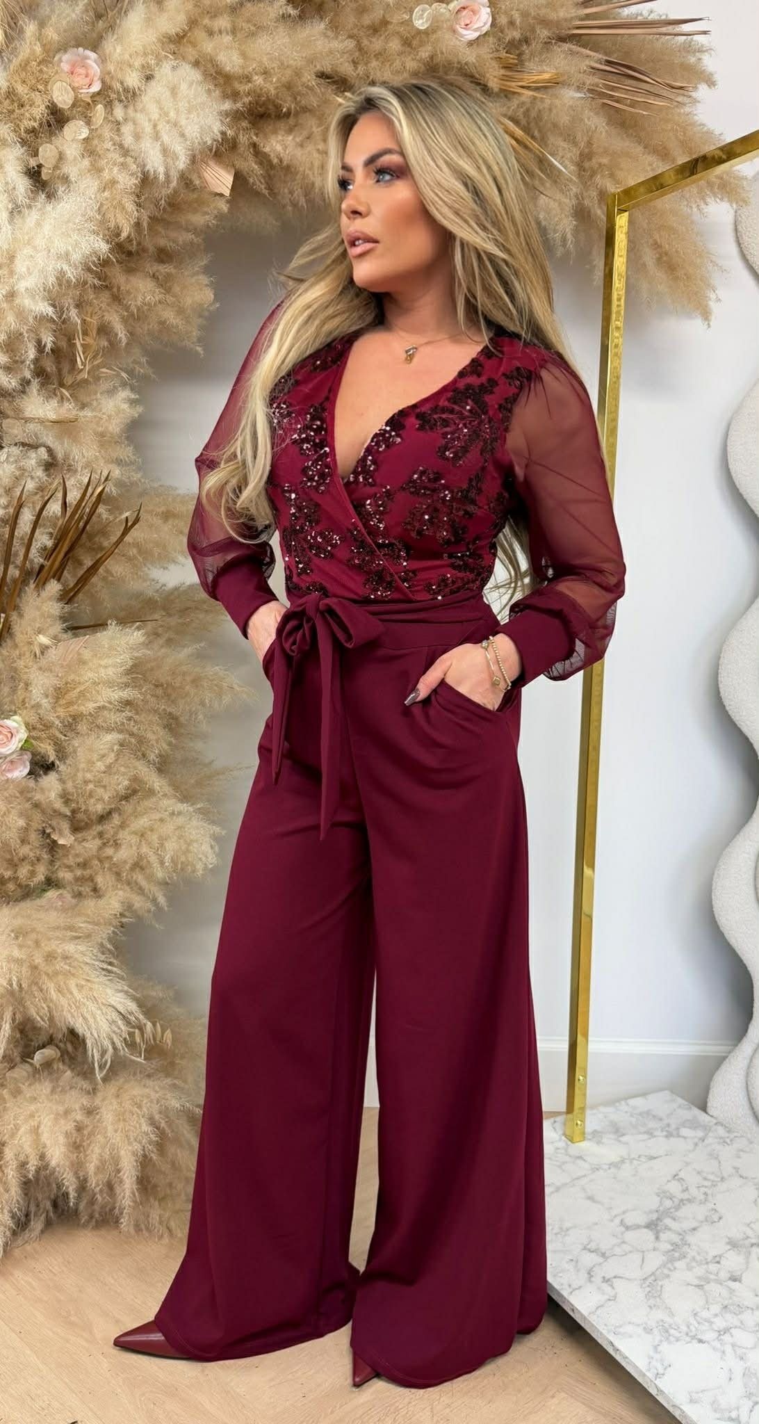 FAY SEQUIN STRETCH JUMPSUIT BORDEAUX