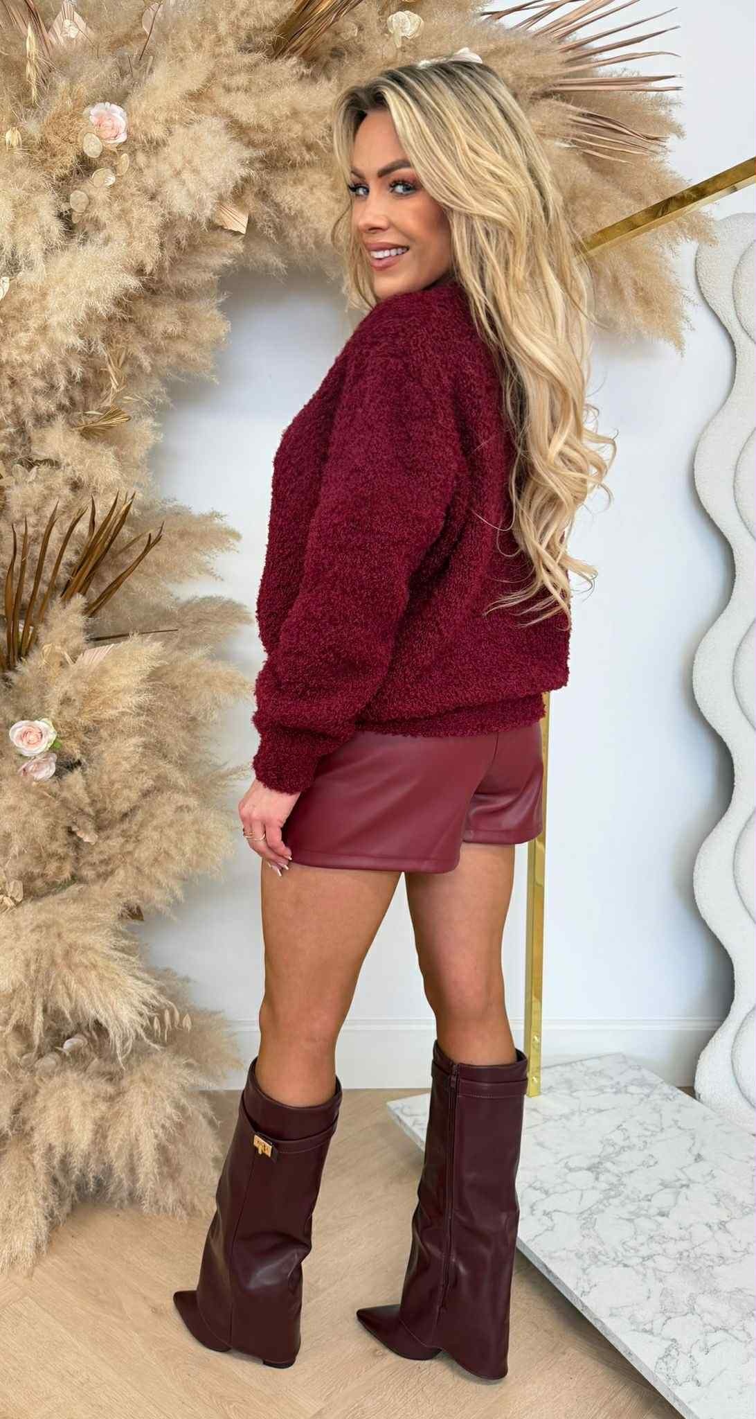 FLUFFY TEDDY SWEAT BORDEAUX
