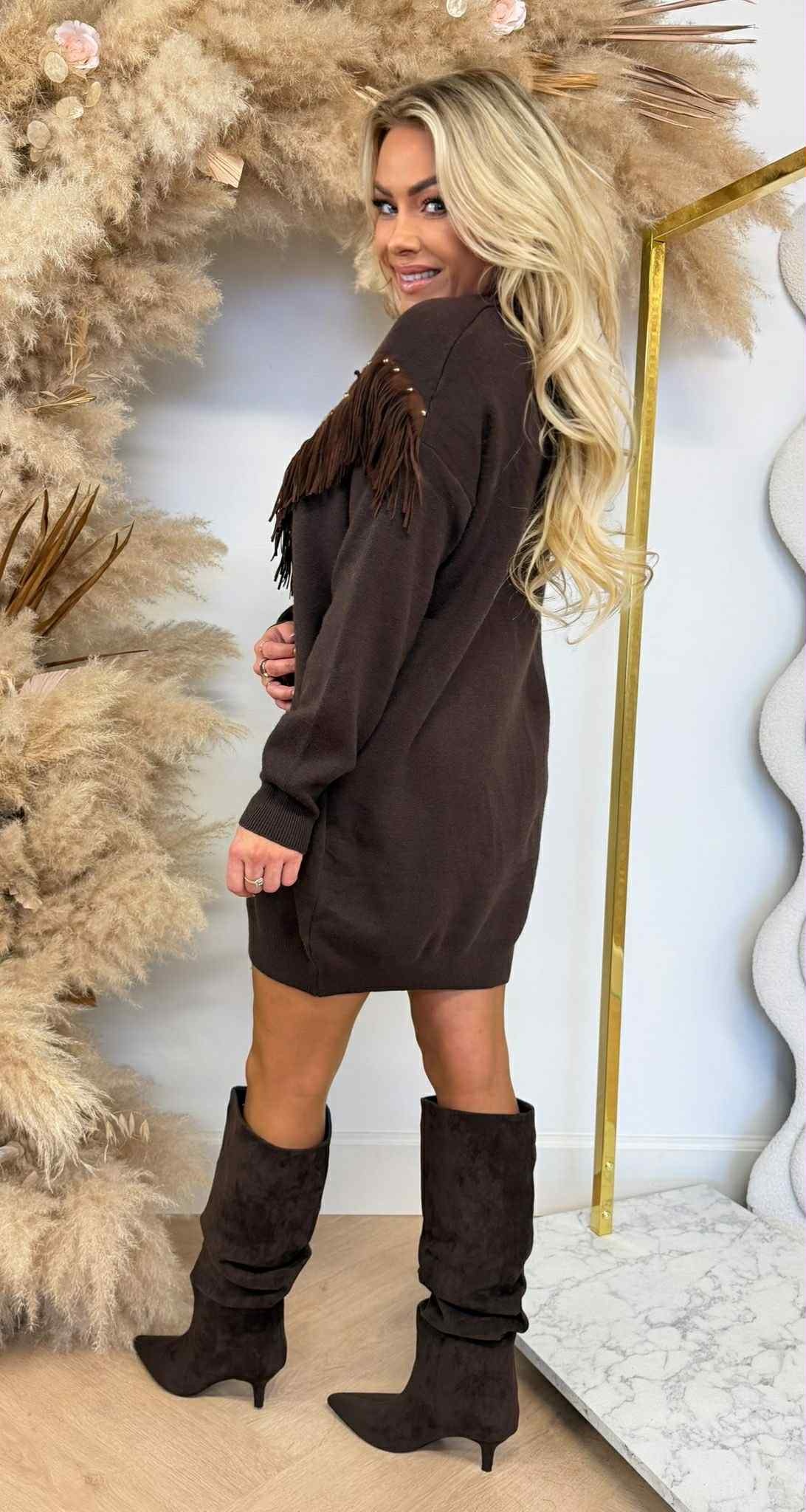 IN LOVE! Deze dress met stoere studs en franjes mag niet ontbreken in jouw kledingkast! Wacht niet te lang… deze vliegt de webshop uit!