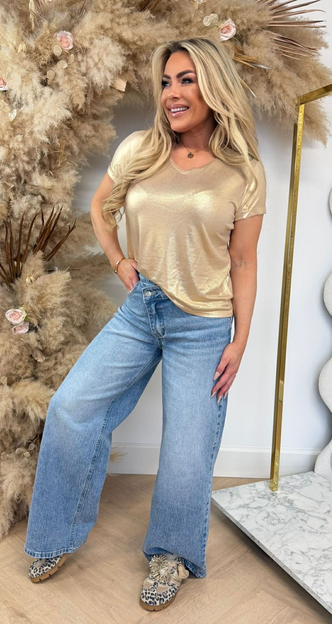 SO GLAMMY! Deze geweldige nieuwe top, hebben wij speciaal voor jou ingekocht! Hoe leuk is deze glimmende stof, super leuk voor een feestje, yeah!