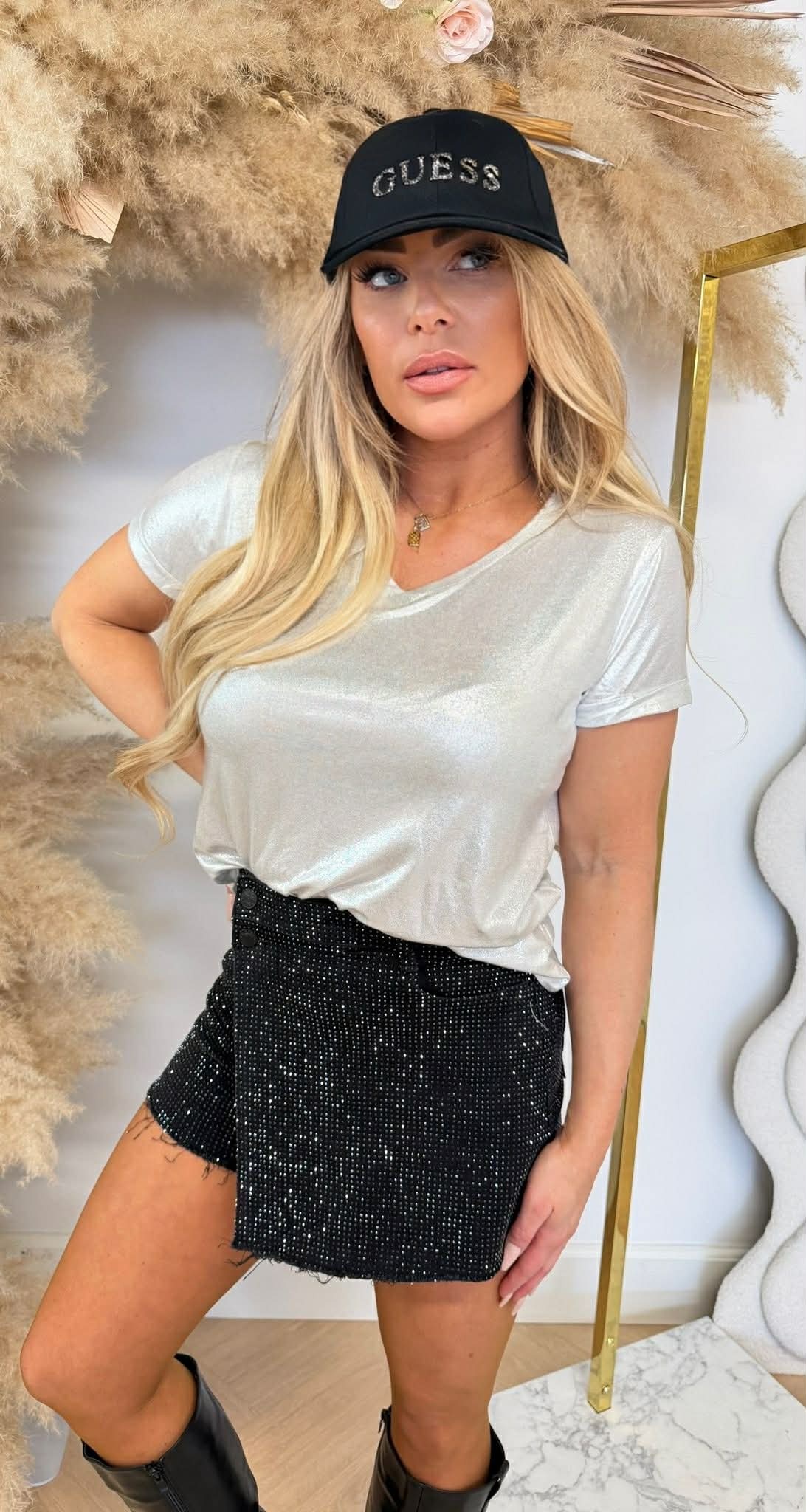 SO GLAMMY! Deze geweldige nieuwe top, hebben wij speciaal voor jou ingekocht! Hoe leuk is deze glimmende stof, super leuk voor een feestje, yeah!