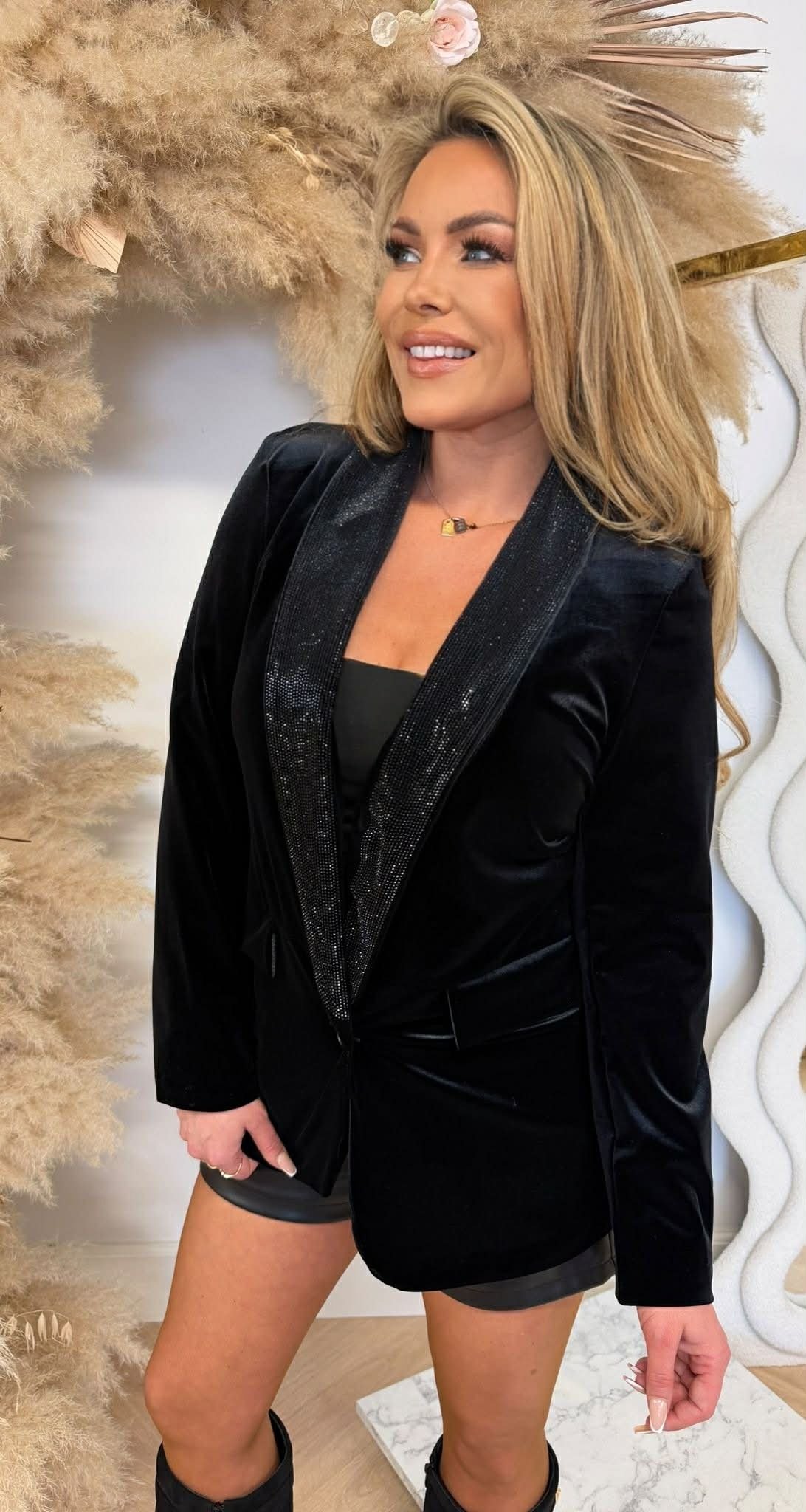 WAUW! Hoe mooi is onze glam velvet blazer? Gemaakt van een supermooie fluwelen stof en een little touch of glitter!