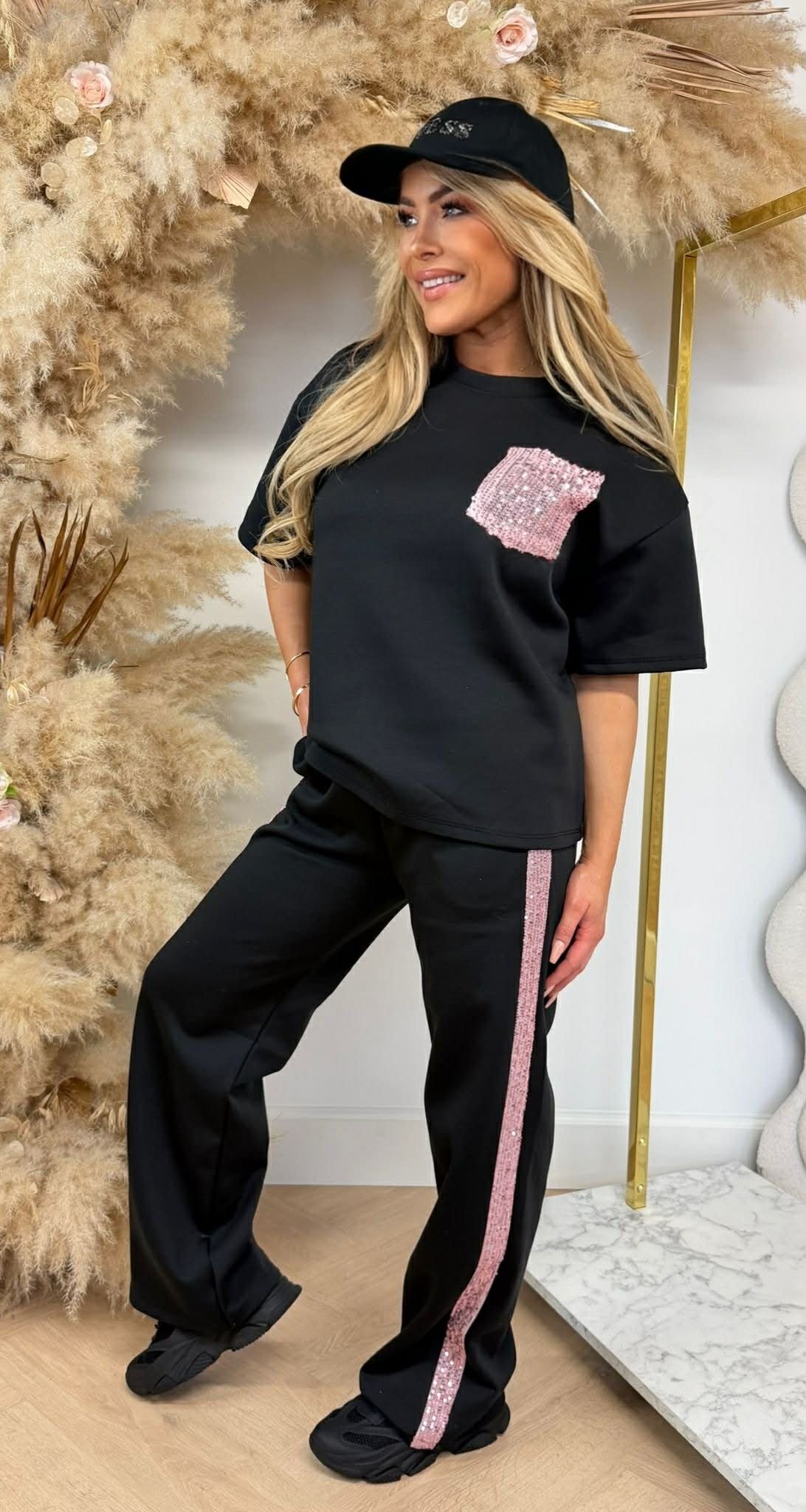 NEW NEW NEW! Weer een nieuwe set met dé viral glitterzak, yeah! Deze set bestaat uit een shirt en straight leg pants.