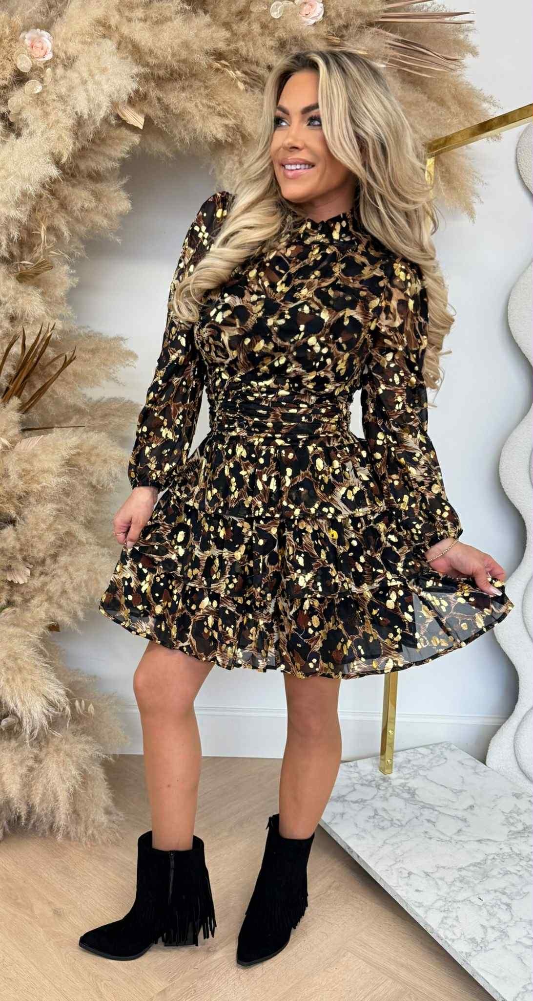 GLAMOUR PRINT DRESS 4478 BLACK/GOLD