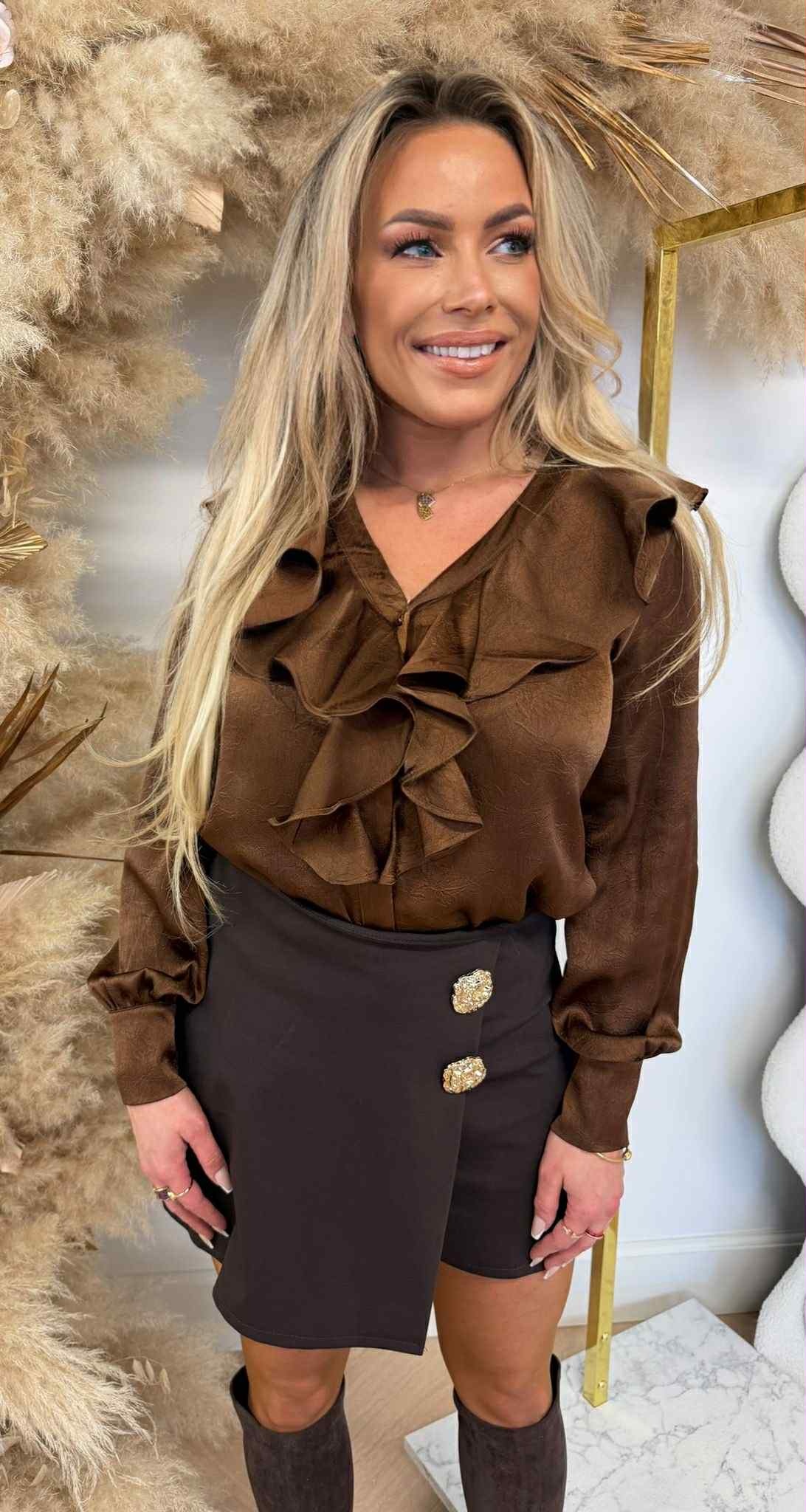 GLAMOUR RUFFLE BLOUSE CH356 CHOCO