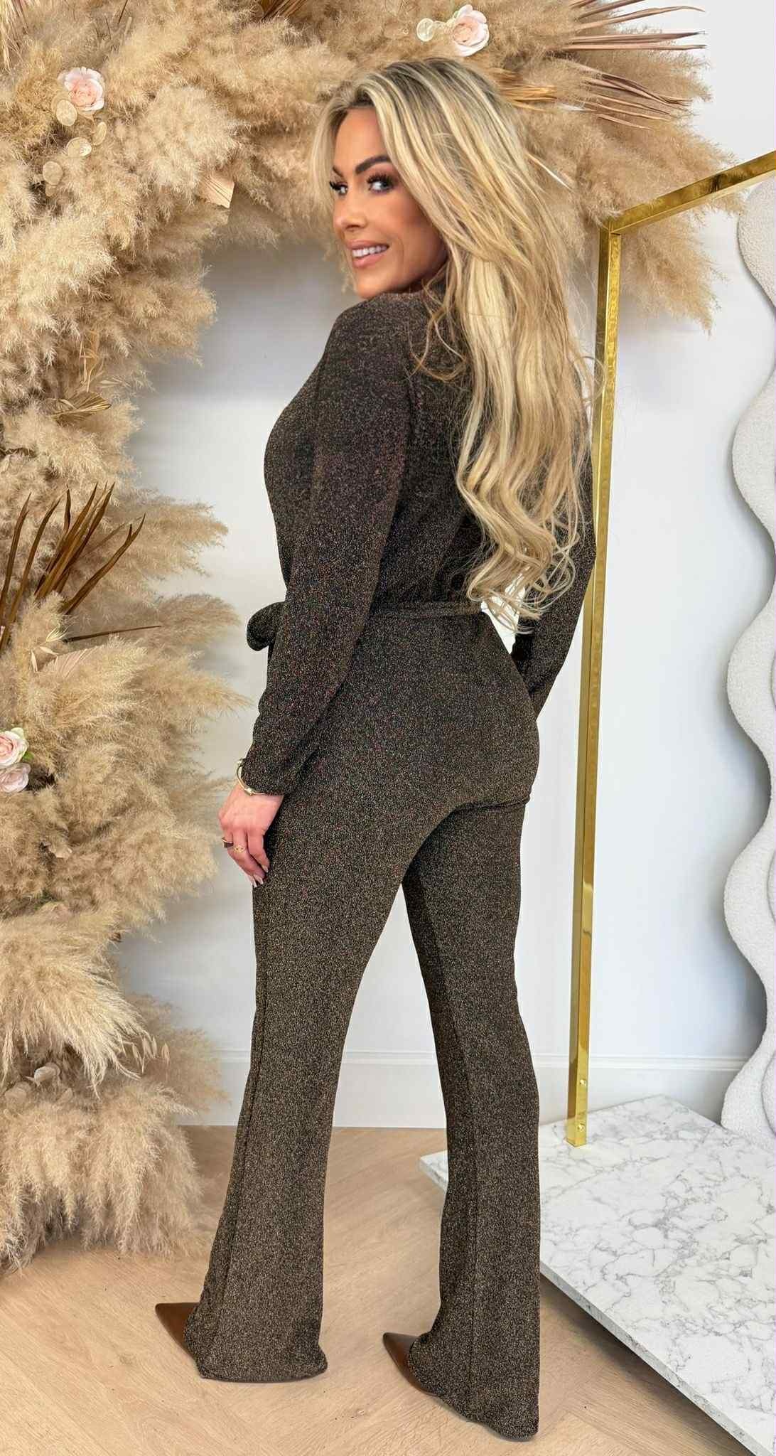 De glitter jumpsuit is jouw go-to outfit voor elk feestje! Een aansluitende fit en subtiele glitters. Combineer met heels en je bent in een klap ready to glow!