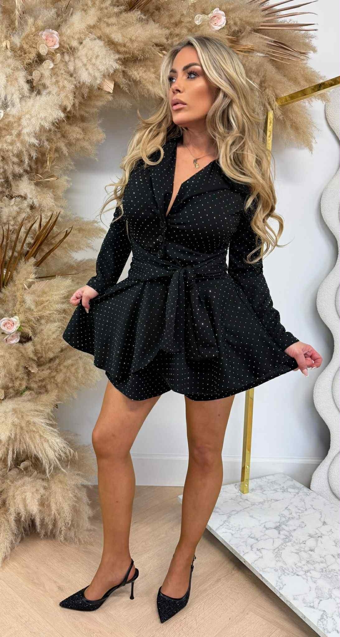 RENATE GLITTER KNOOP PLAYSUIT BLACK