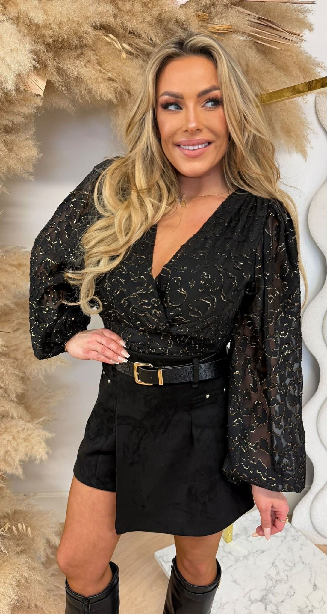 GOLDY LEOPARD BLOUSE 5369 BLACK