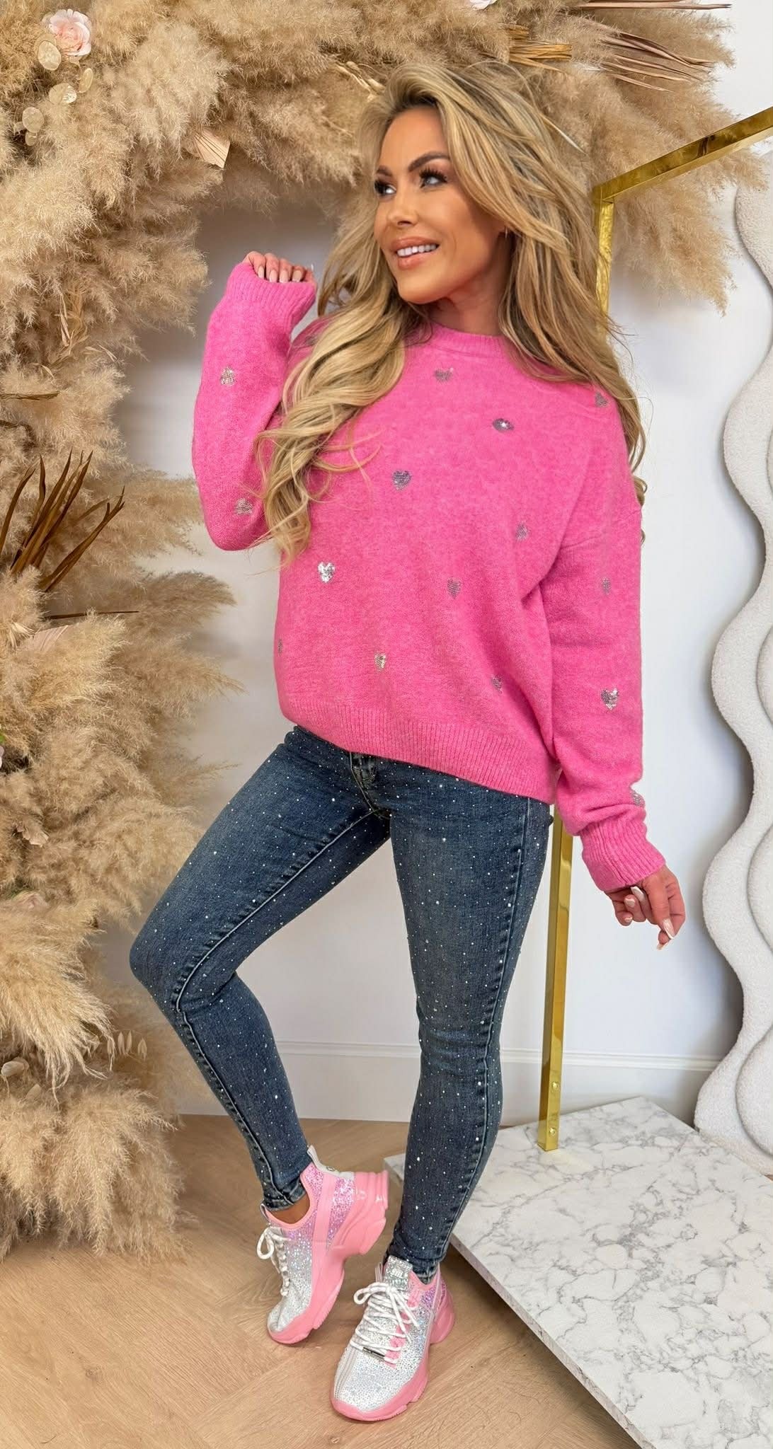 HEART WITH SEQUINS SWEAT SH740 FUCHSIA