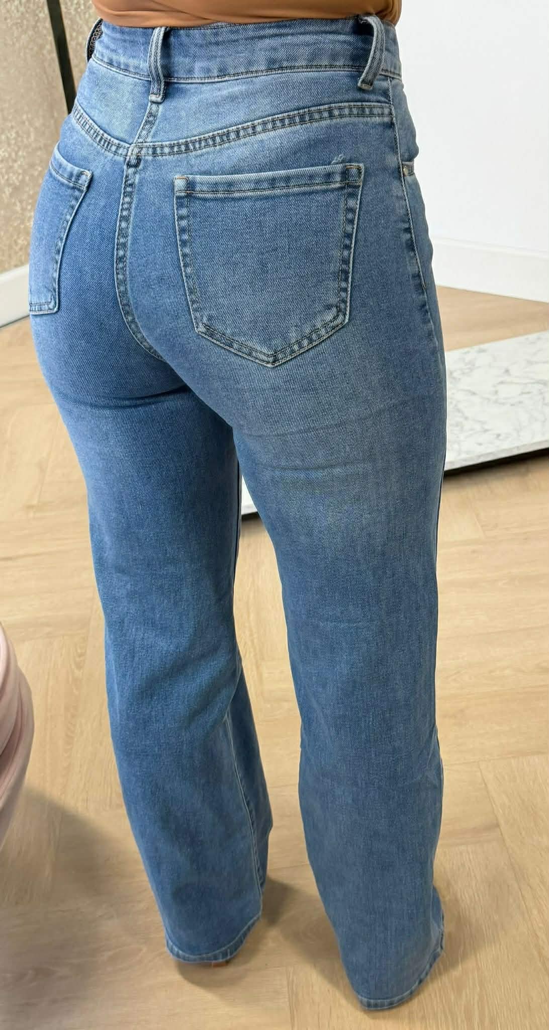 HIGH WAIST WIDE LEG JEANS 768B DENIMBLUE