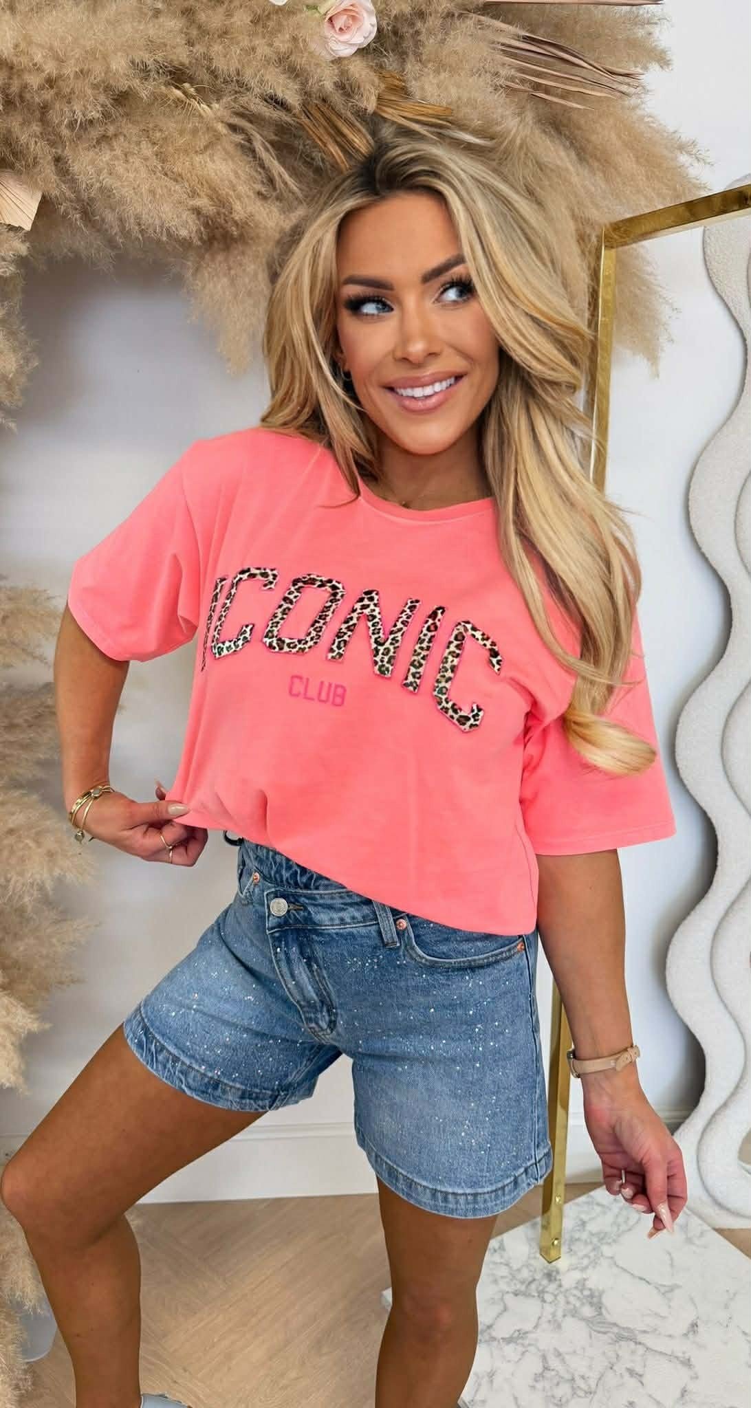 Artikelcode ICONIC LEOPARD TEKST TEE CORAL