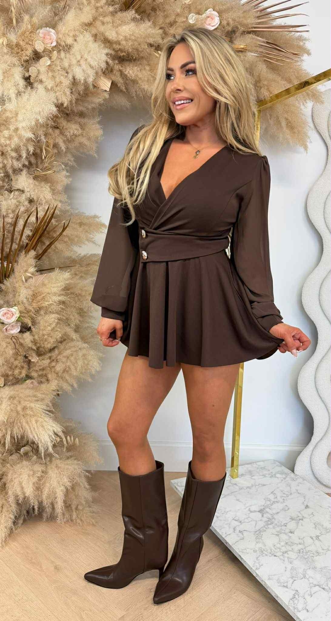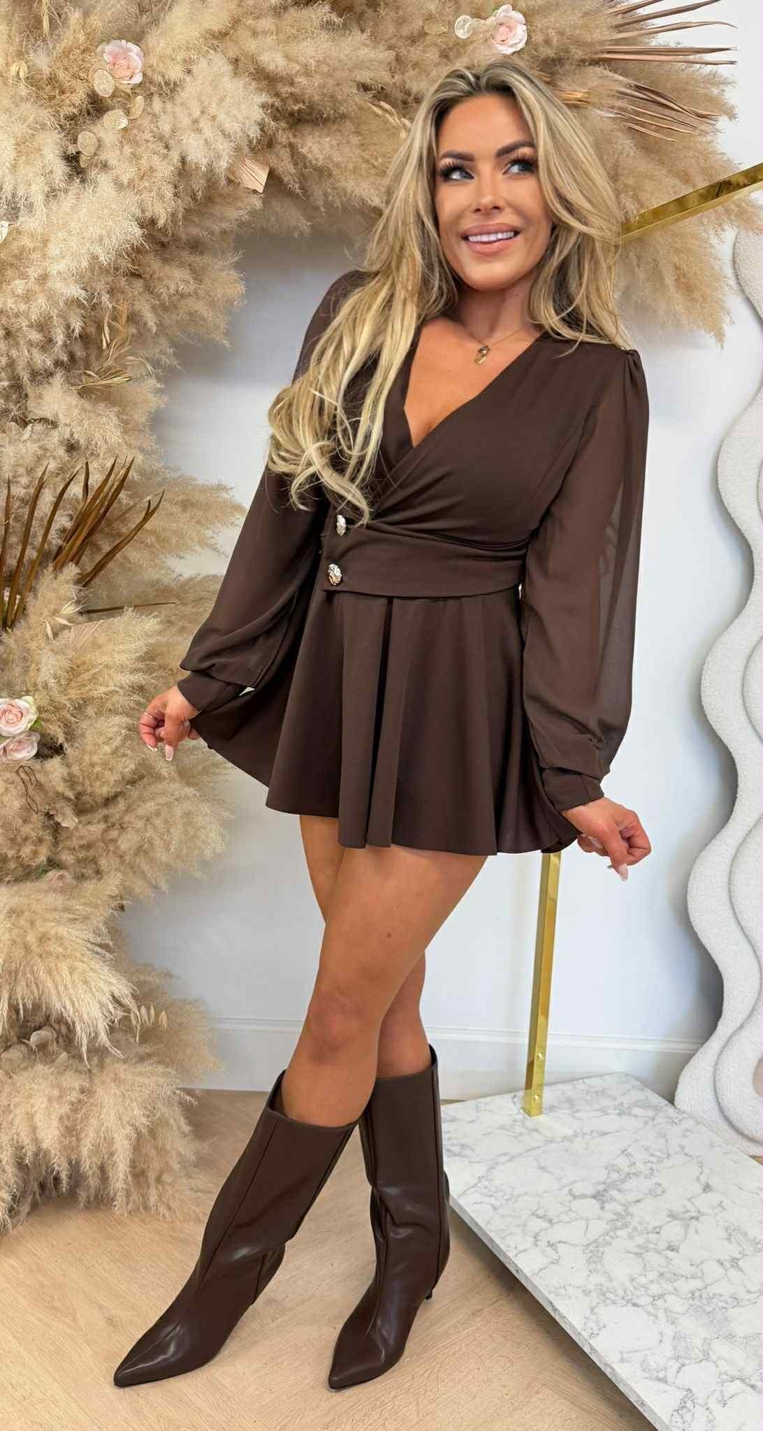 JODIE GLAM MESH SLEEVE PLAYSUIT CHOCO