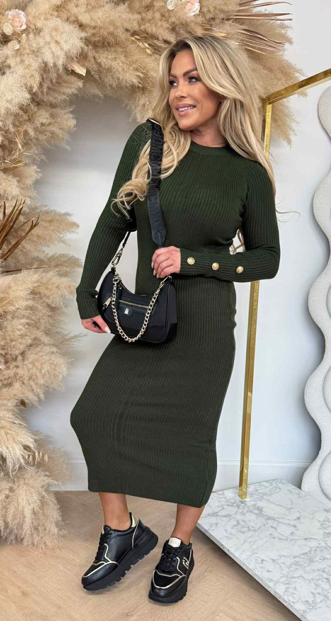 KAY BUTTON RIB DRESS 9970 ARMYGREEN