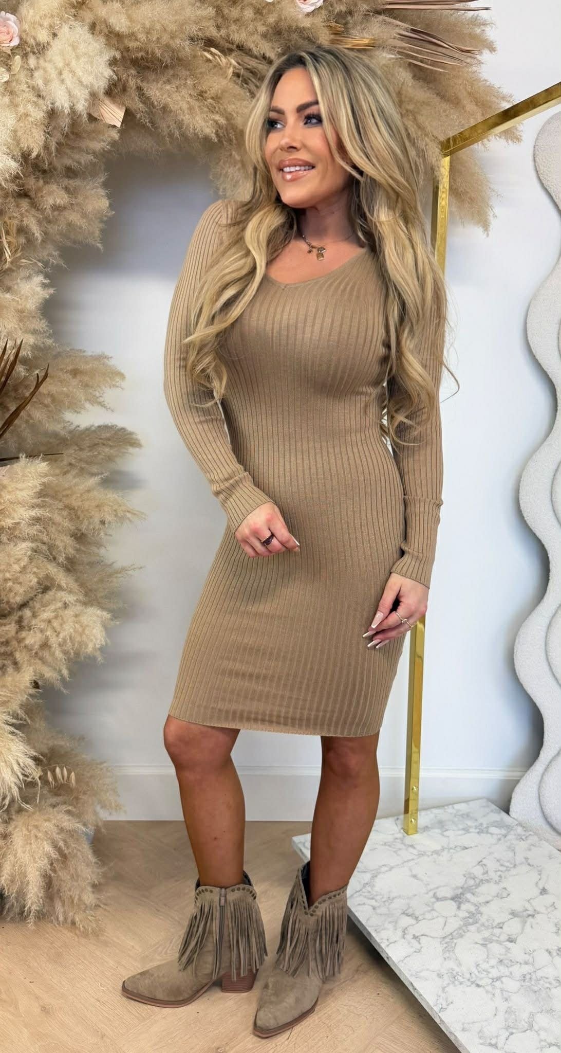 KAYLLA V HALS RIB DRESS 9833 BEIGE