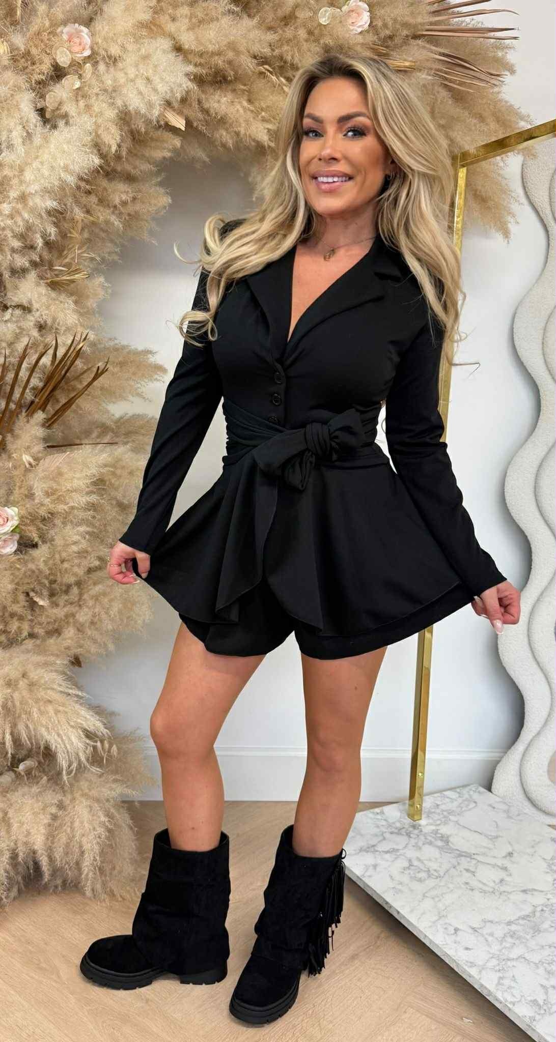 KNOOP OVERSLAG PLAYSUIT BLACK