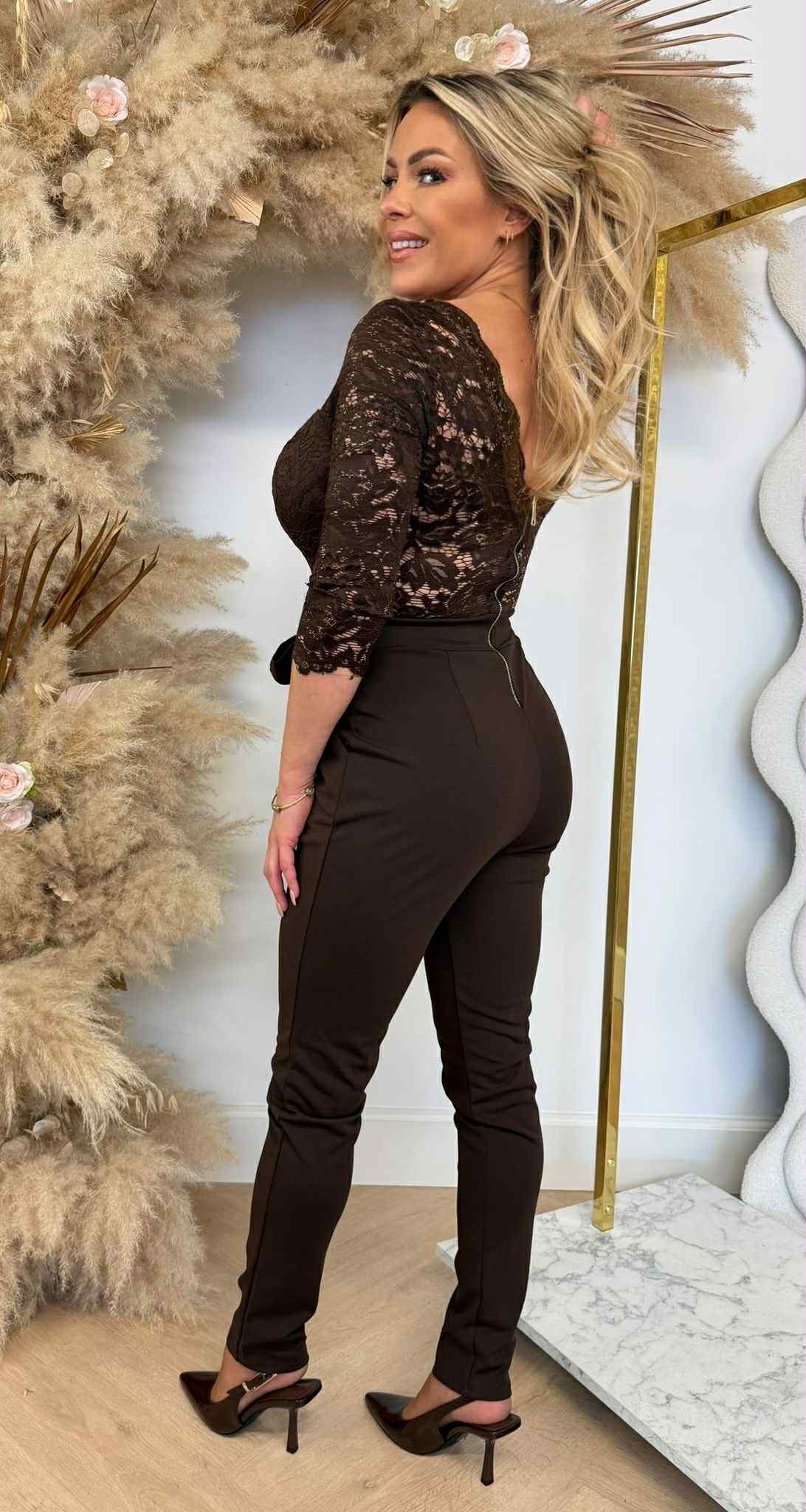 LACY BOW OFFSHOULDER JUMPSUIT CHOCO