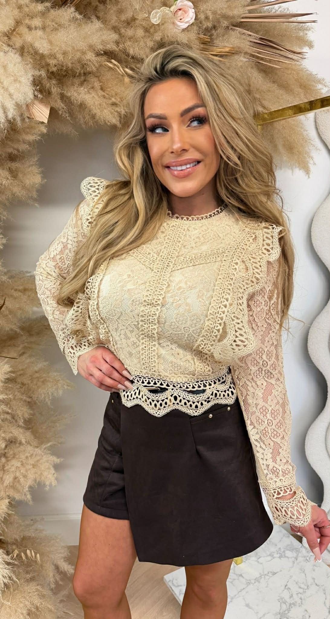 LACY RUFFLE TOP 8840 BEIGE