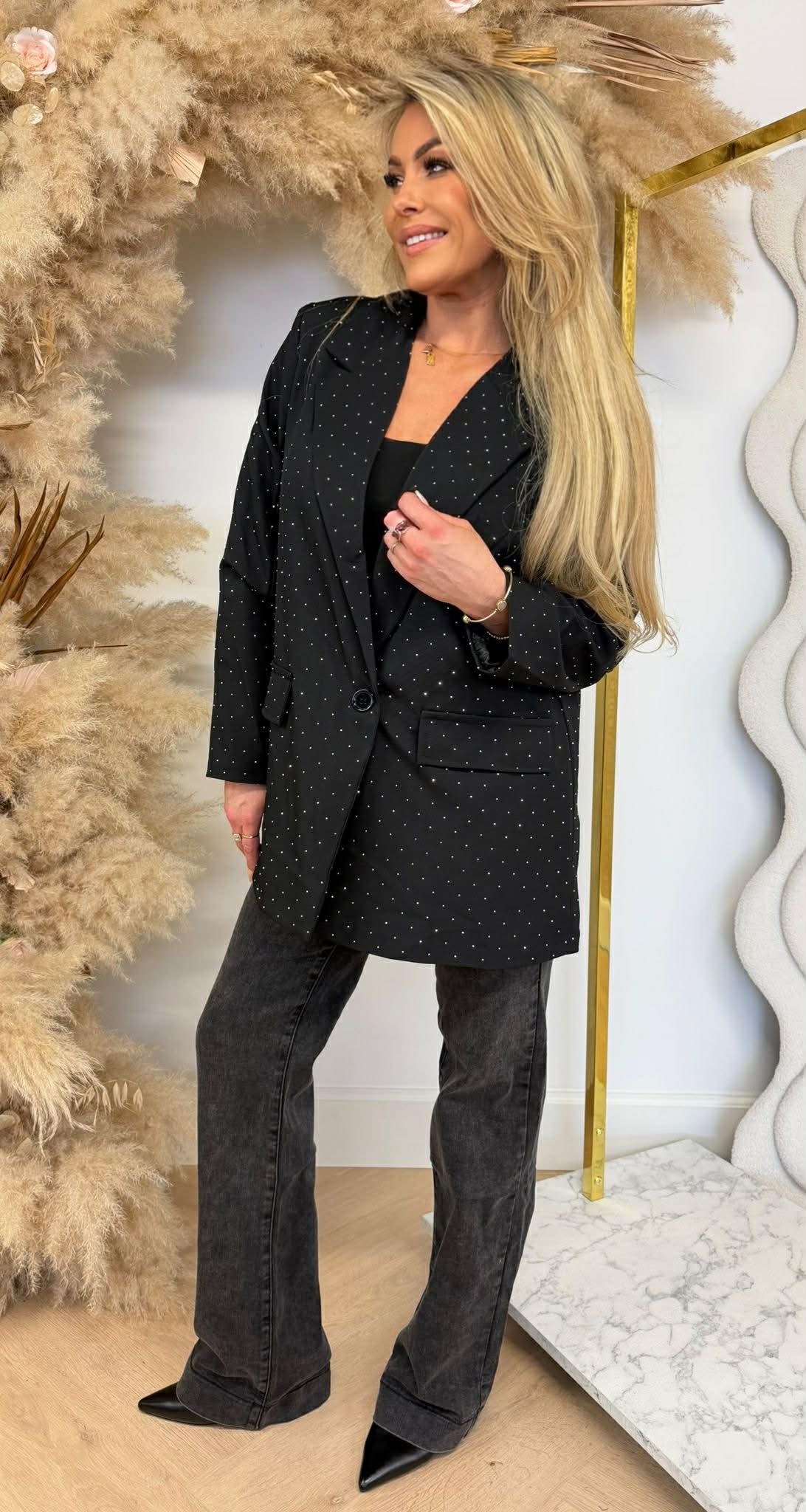 LEANNE OVERSIZED GLITTER BLAZER BLACK