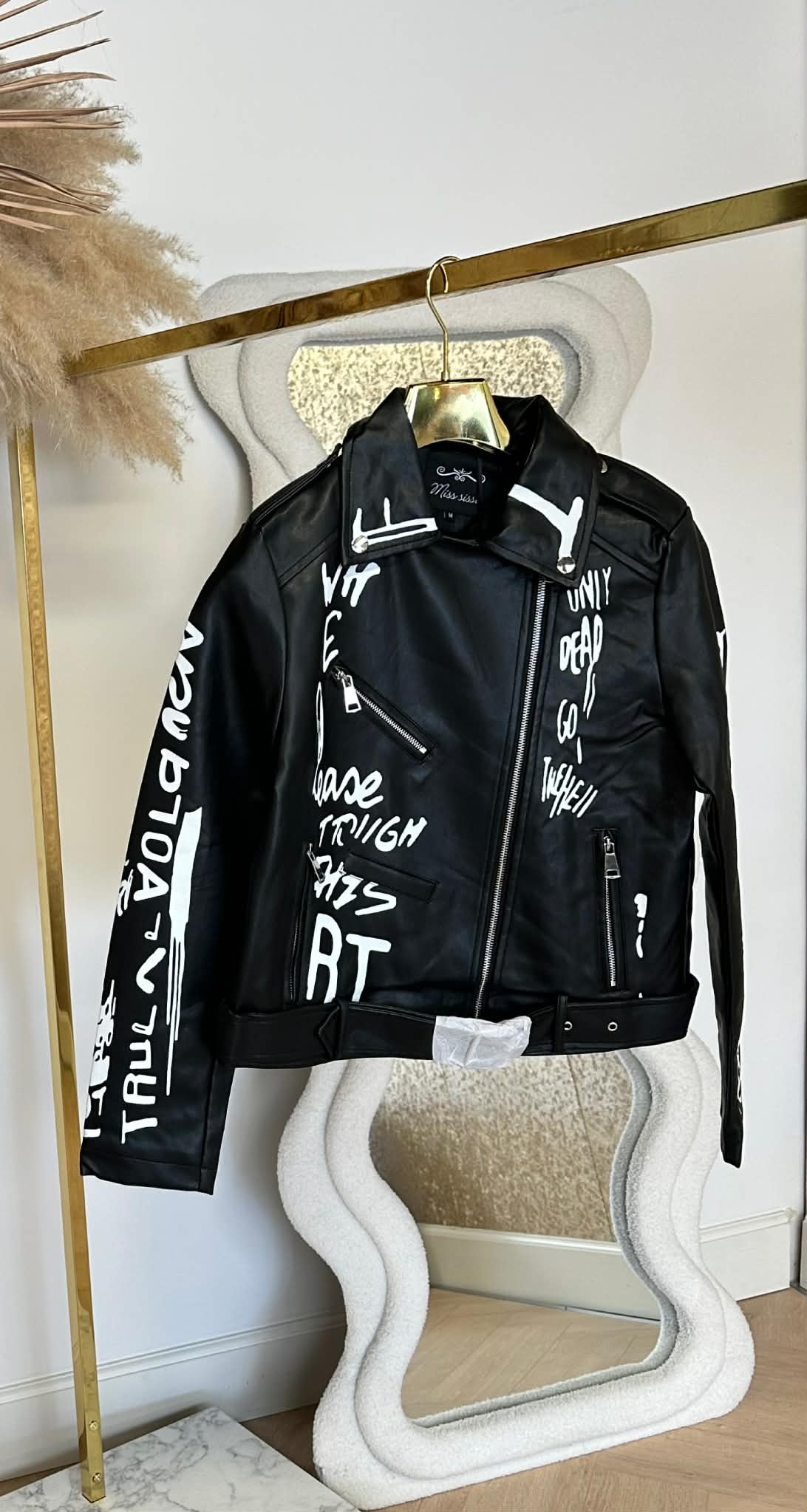 LEATHER LOOK TEKST JACKET MS130 BLACK