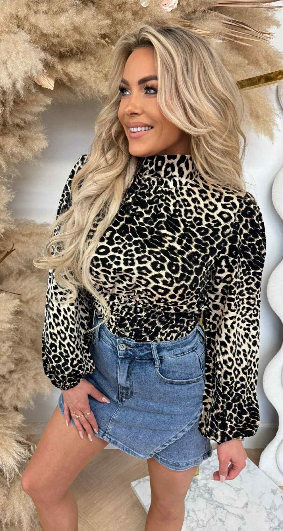 LEOPARD LONGSLEEVE CROPPED TOP 4627B BEIGE/BLACK