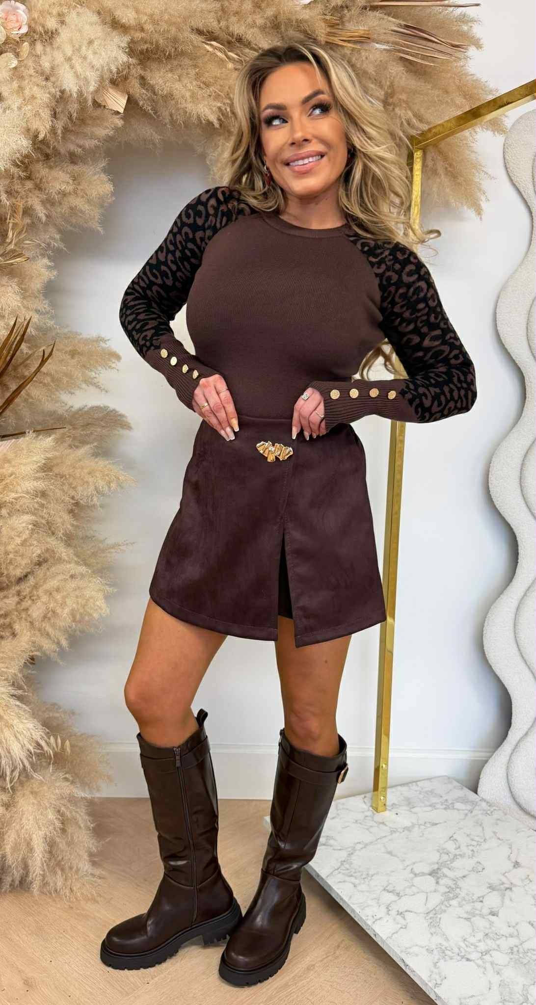 LEOPARD SLEEVE BUTTON TOP 1079 CHOCO