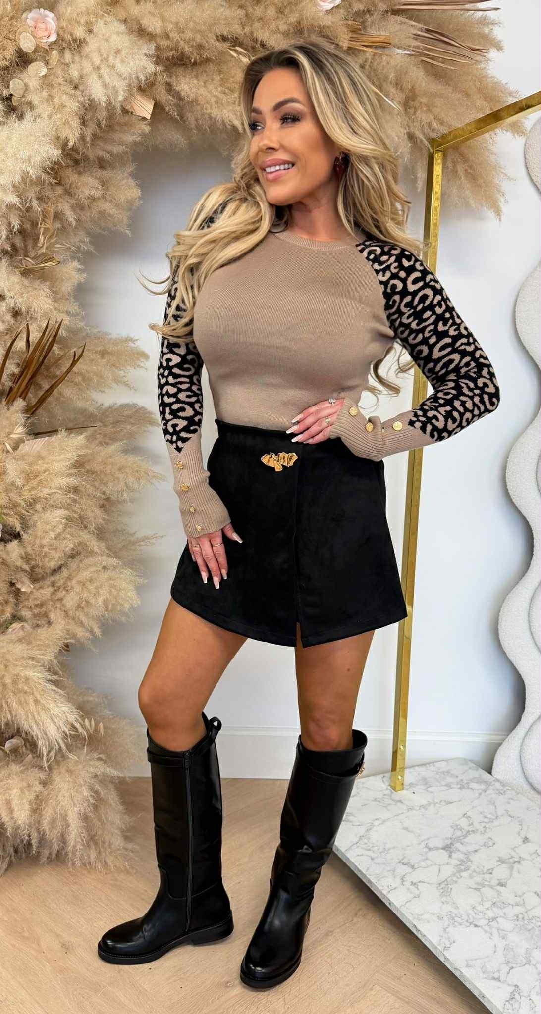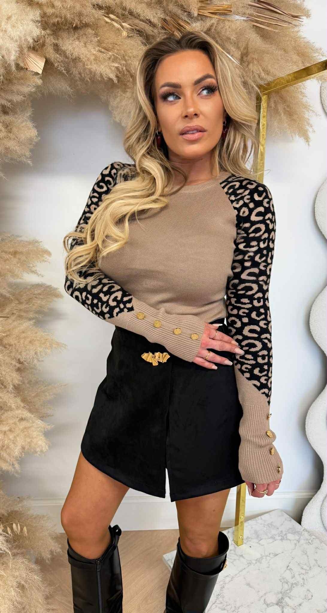LEOPARD SLEEVE BUTTON TOP 1079 TAUPE