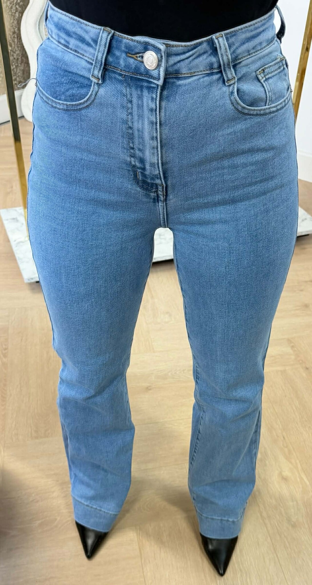 BASIC MUSTHAVE! Deze straight leg jeans zit als gegoten! Met een super leuke zoom aan de pijpen en een stretchy stof dat perfect naar je lichaam vormt, easy, cute en good to go!