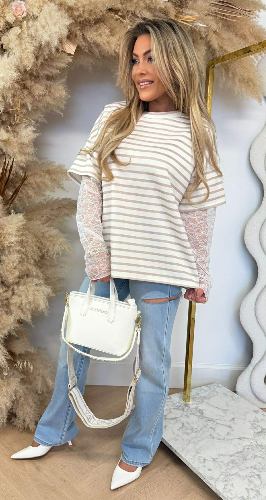 LILLY LACE STRIPE TEE BEIGE