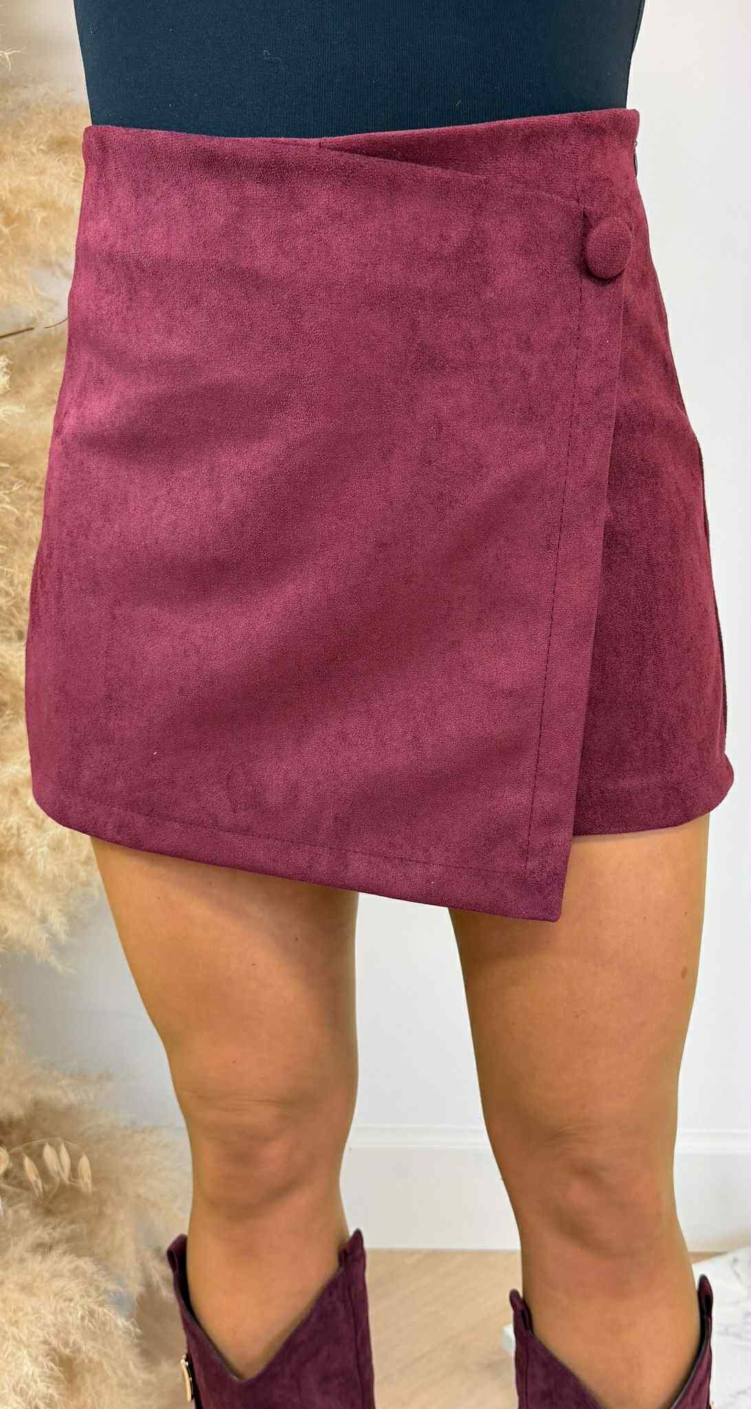 LILLY SUEDE BUTTON SKORT BORDEAUX