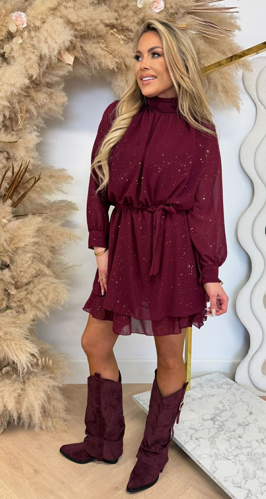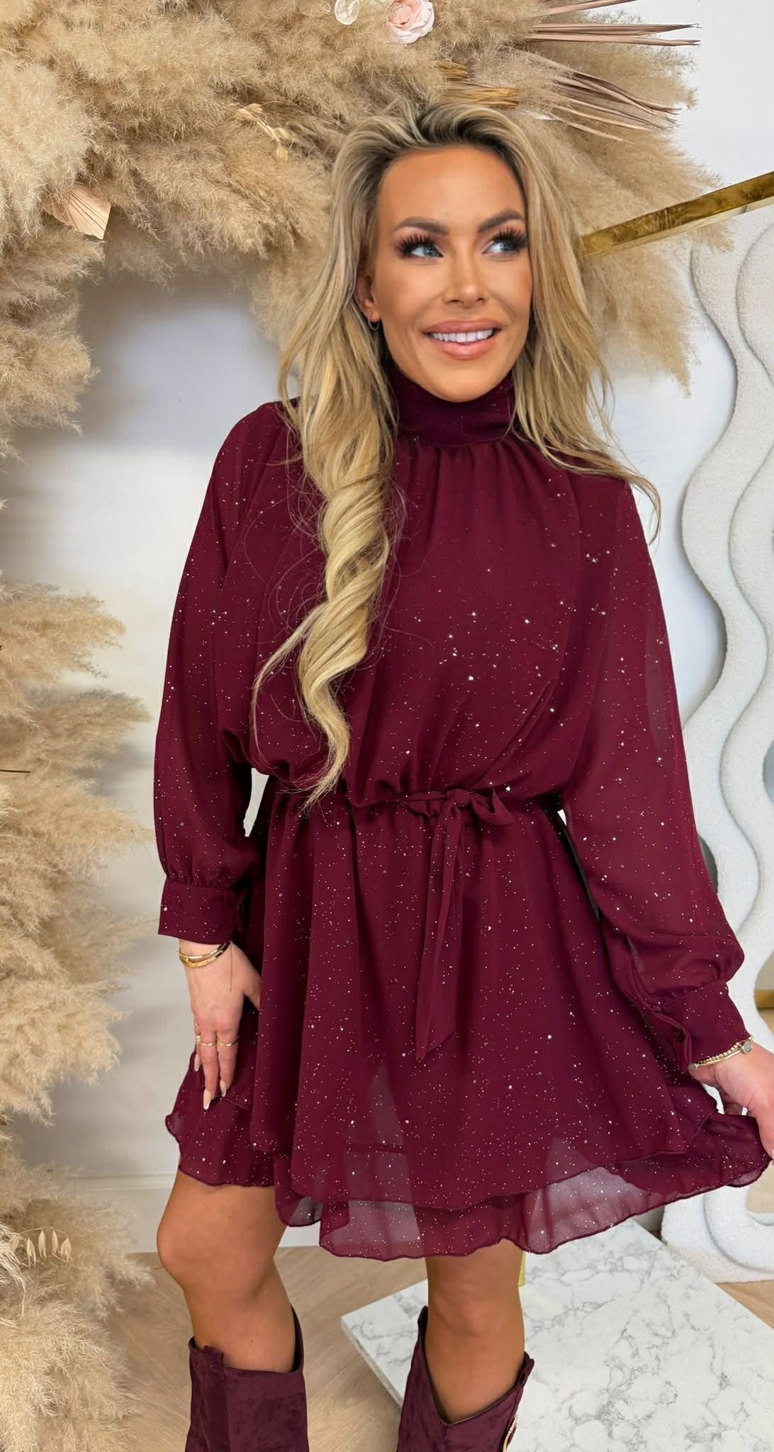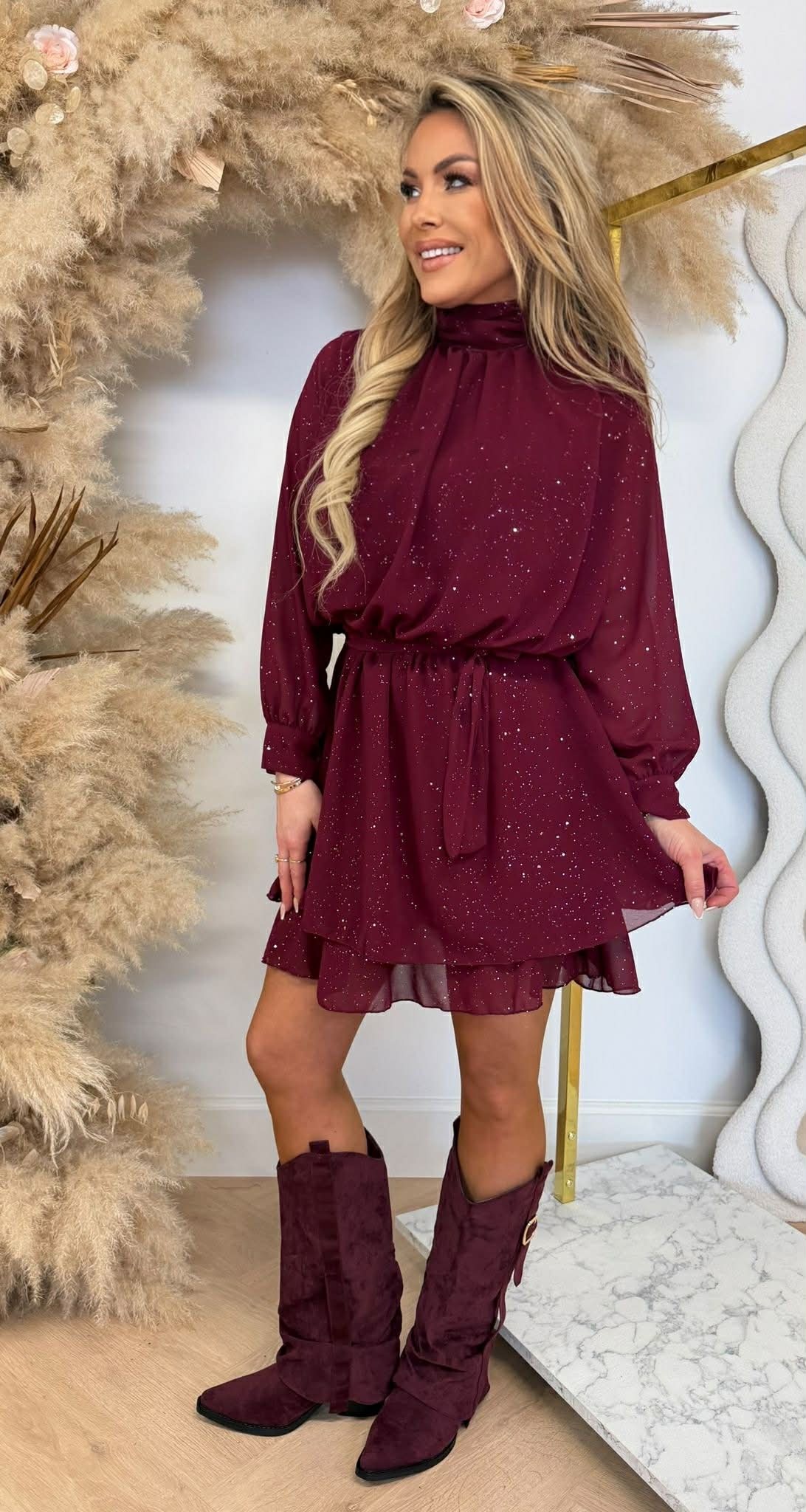 LUXURY SPARKLE DRESS BURGUNDY