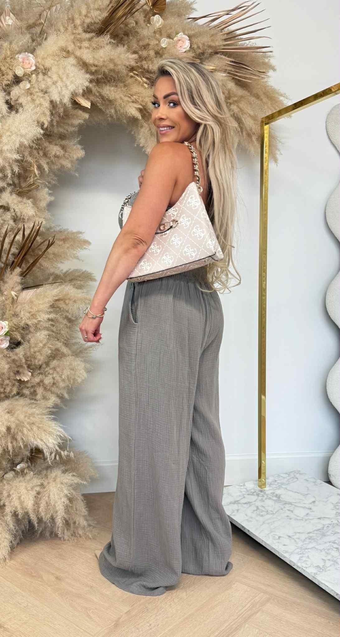 NALA STRAPLESS COTTON JUMPSUIT TAUPE