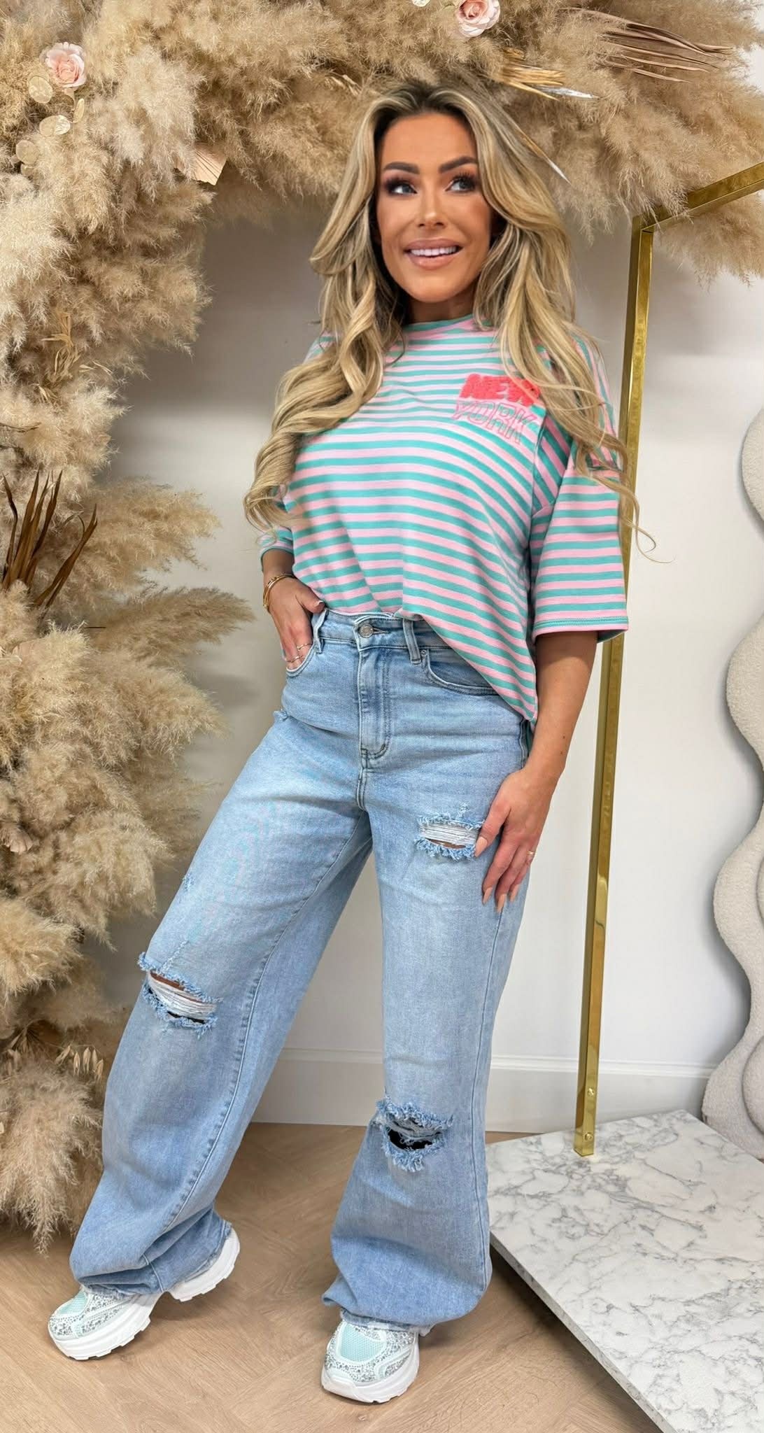 WE LOVE STRIPES! Dit gave shirt valt oversized & is verkrijgbaar in meerdere kleuren.
